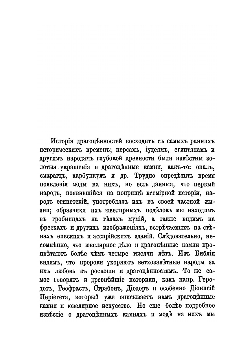 Предлагаемая книга «Драгоценные Камни» в первый раз издана в 1877 году Императорским С.-Петербургским Минерологическим Обществом. Второе дополненное издание напечатано в 1888 году. Настоящее значительно дополненное издание является уже третьим.Говоря о русскихъ драгоценных камнях, не можем не упомянуть о полезной и энергичной деятельности, по отношенiю к этимъ редким ископаемым, Горного Департамента с тех пор, как во главе его стоит известный просвещенный деятель К. А. Скальковский. К числу многих его мeрoприятий относятся командировки горных инженеров для поисков драгоцениых камней, с целью пополнения коллекций знаменитого музея Горного Института, снабжающего все наши учебные заведения минералами. По почину этого же ученого приняты особые меры для поощрения отыскания алмазов в России, выписаны капские алмазы, и как образцы розданы горнорабочим для распознания при нахождении. Наконец, в настоящее время, по инициативе К. А. Скальковского, составлены новые весьма льготные правила о добыче драгоценых и цветных камней которые уже одобрены Государственным Советом, и будут на днях опубликованы Правительствующим Сенатом.
