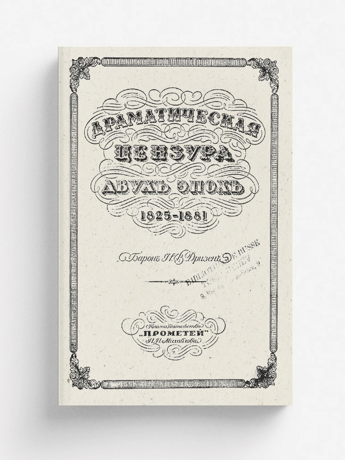 Дризен, Николай Васильевич (1868-1935). Драматическая цензура двух эпох. 1825-1881 / Бар. Н. В. Дризен. — [Петроград] : «Прометей» Н. Н. Михайлова, [1917]. — [2], III, [3], 346 с.; 23.