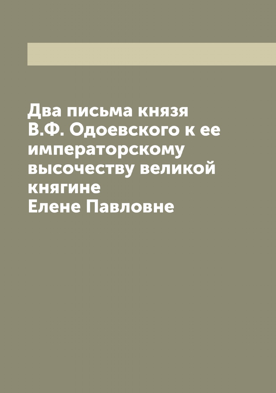 Печатная книга «Два письма князя В.Ф. Одоевского к ее императорскому высочеству великой княгине Елене Павловне» в мягкой обложке, язык - русский. В книге 45 страниц, она напечатана на белой офсетной бумаге плотностью 80 г/м². Формат издания — 165x235 мм. Все книги аккуратно упаковываем в прочный трёхслойный непрозрачный картонный конверт.