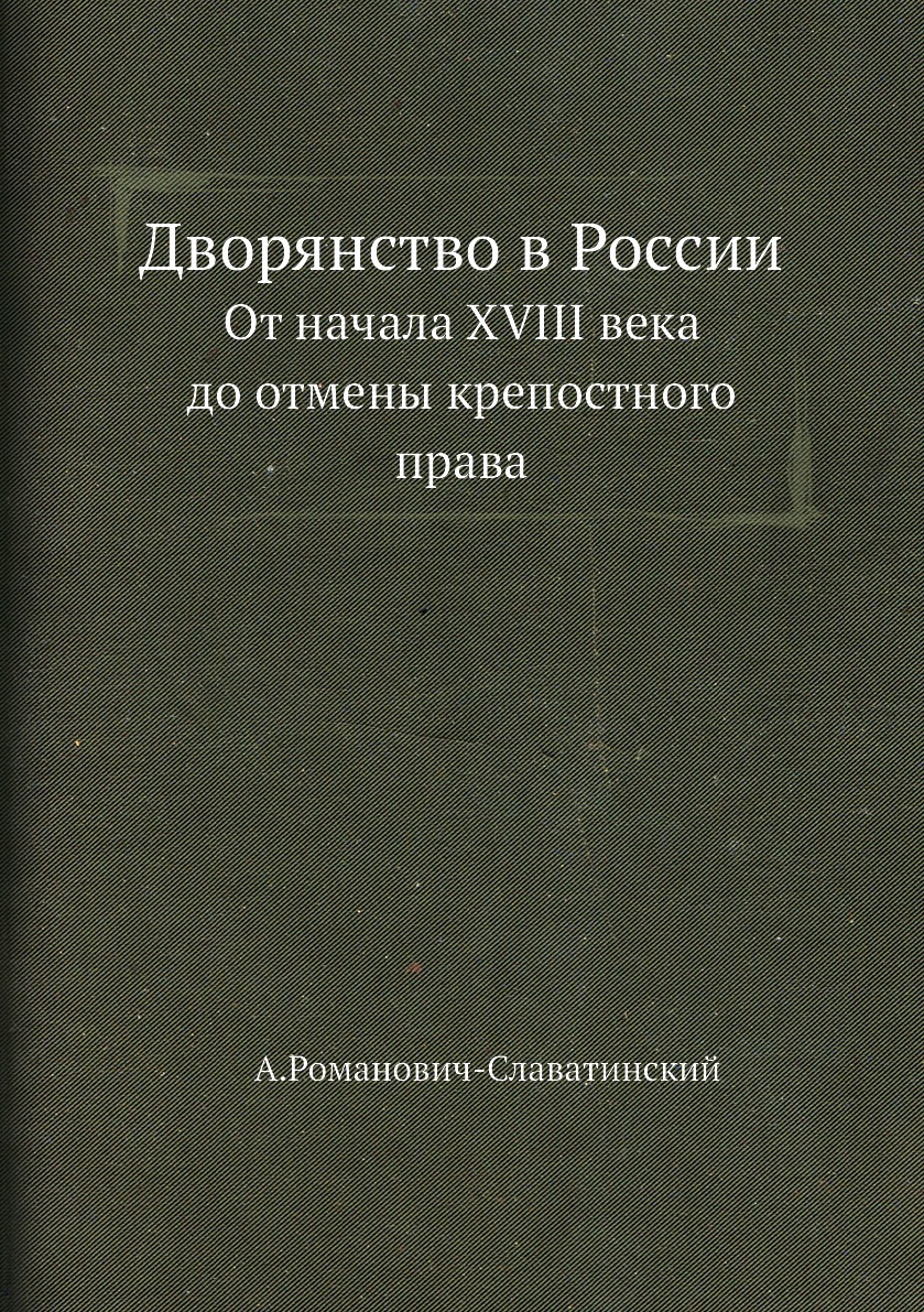 Одним из самых известных и авторитетных исследований по истории российского дворянства является предлагаемая Вашему вниманию работа «Дворянство в России от начала XVIII века до отмены крепостного права» (1870). За этот выдающийся (по определению Словаря Брокгауза-Ефрона) труд его автор – известный российский юрист и историк права – Александр Васильевич Романов-Славатинский (1832-1910) был удостоен докторской учёной степени.