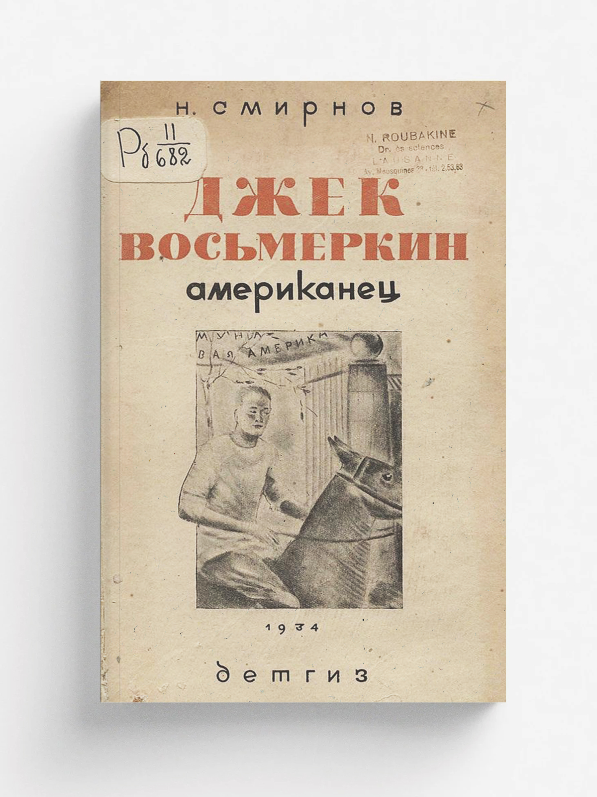 Смирнов, Николай Григорьевич (1890–1933). Джек Восьмеркин американец [Текст] : повесть : в двух частях / Н. Г. Смирнова ; иллюстрации Т. Мавриной. — Изд. 3-е. — Москва : ОГИЗ : ДЕТГИЗ, 1934. — 380, [3] с. : ил.; 22 см.