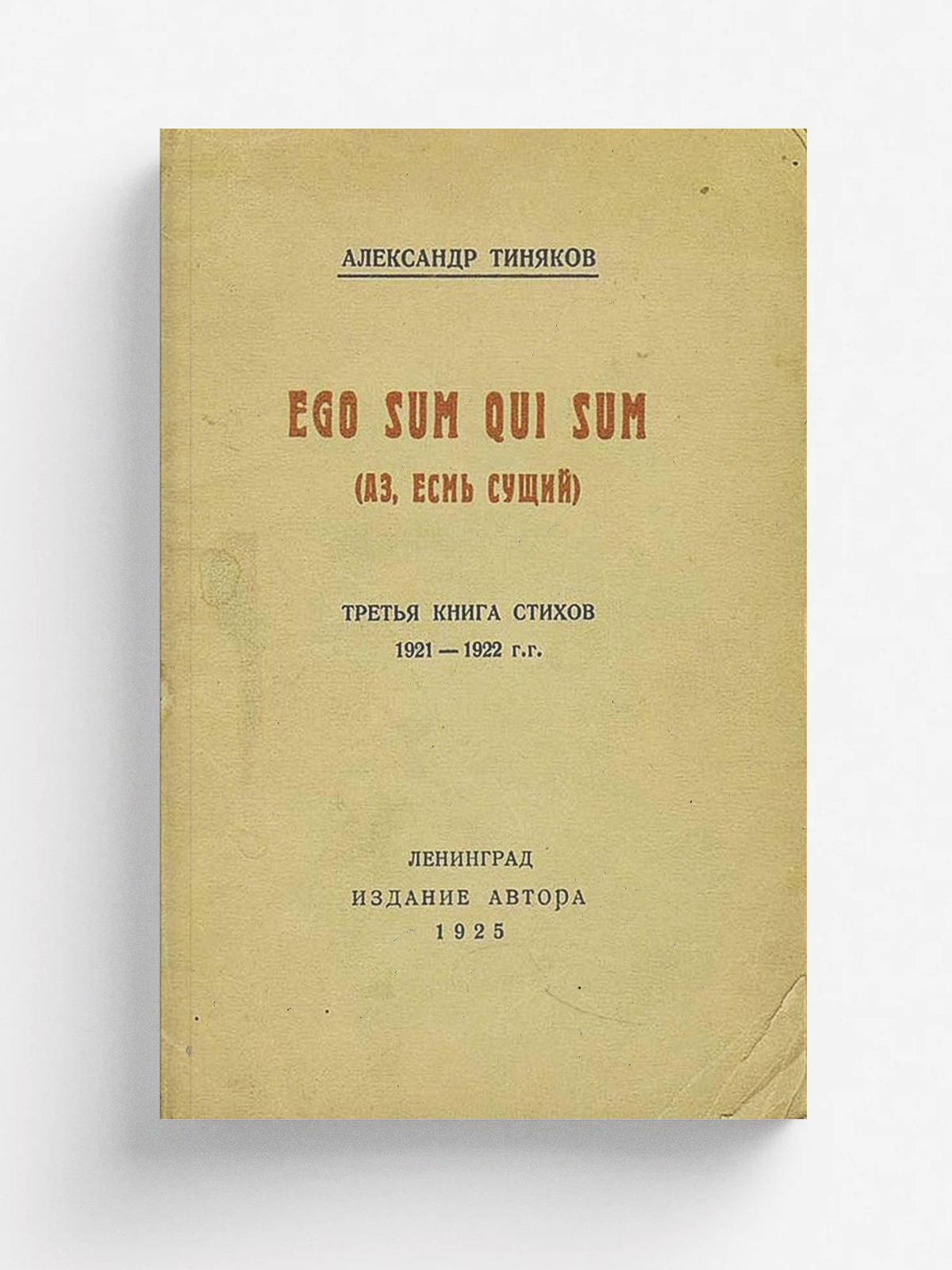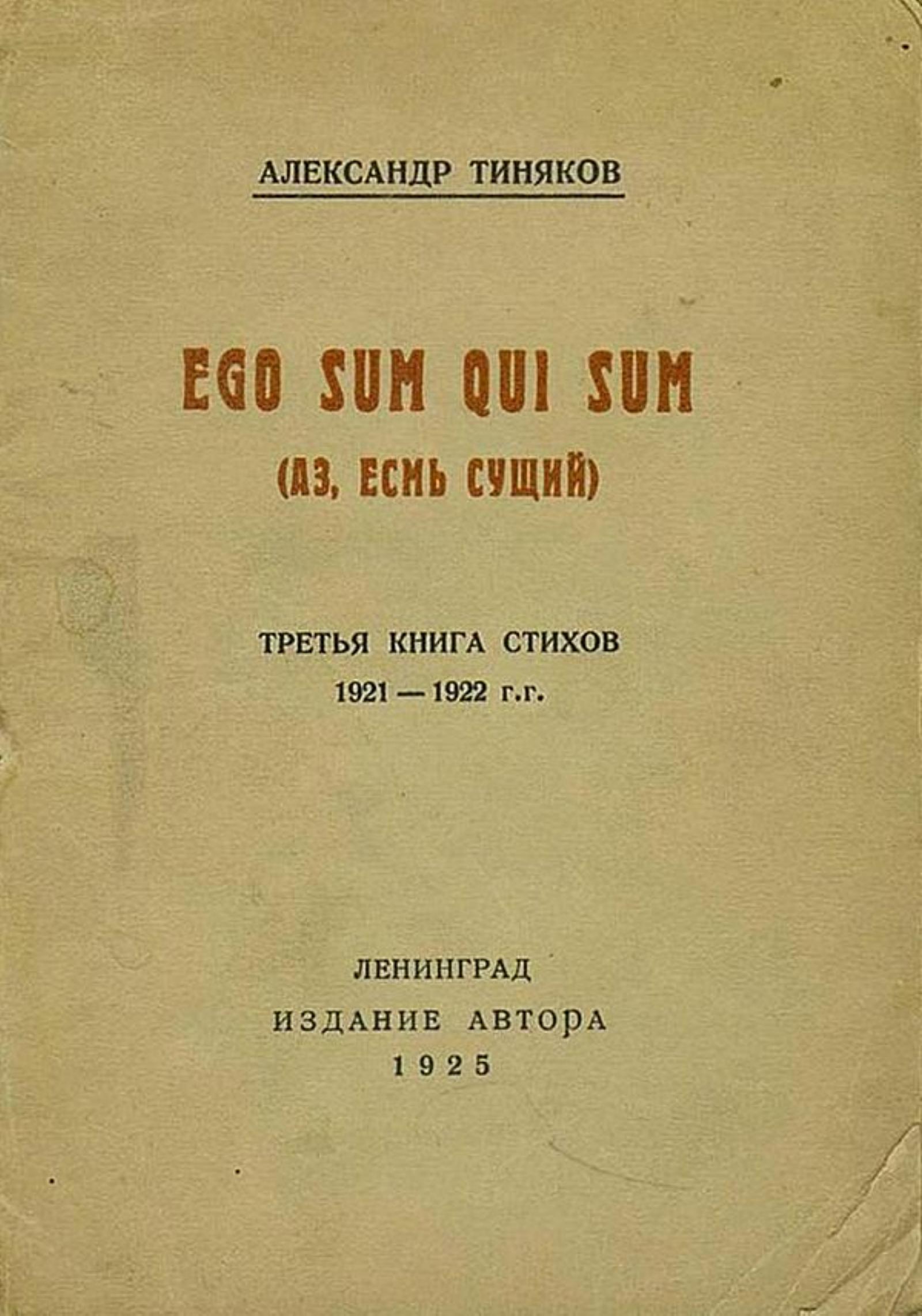 Тиняков, Александр Иванович. Ego sum qui sum : Третья книга стихов 1921–1922 гг. / Александр Тиняков. — Ленинград : Изд. авт., 1924. — 27, [2] с.; 15 см.