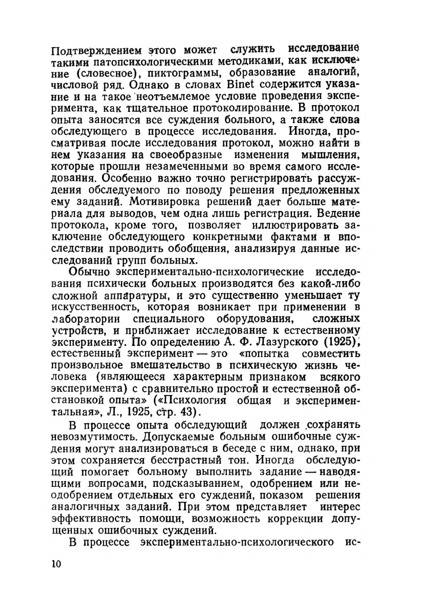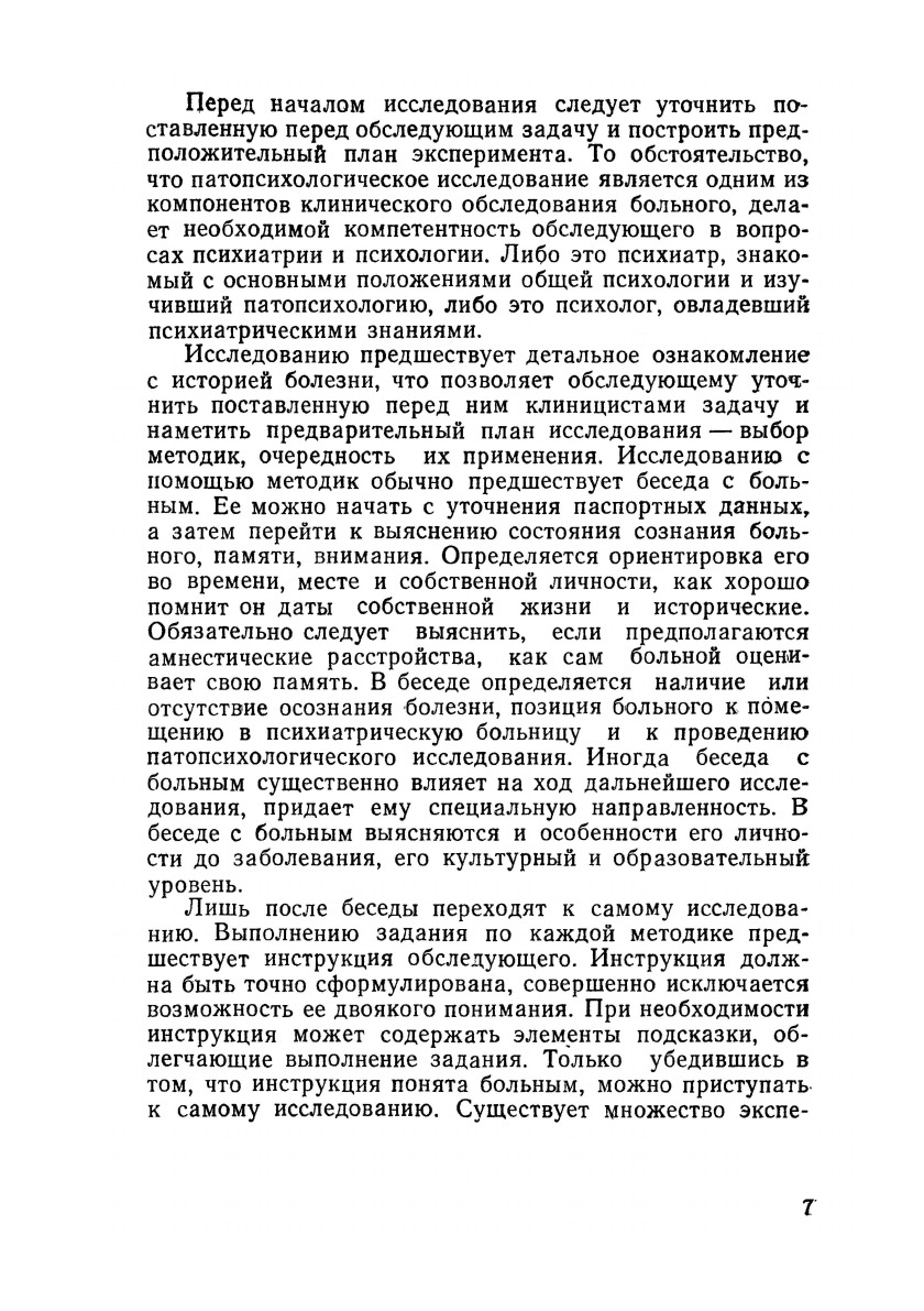 В книге излагаются основные принципы экспериментально-психологического исследования психически больных, описываются наиболее часто употребляющиеся для этого экспериментально-психологические методики, сообщаются сведения об особенностях, обнаруживаемых при исследовании больных шизофренией, олигофренией, эпилепсией, церебральным атеросклерозом, старческими психозами. Указано значение результатов исследования для решения дифференциально-диагностических вопросов и в практике психиатрической экспертизы. В приложении приведены образцы необходимых для исследования таблиц и бланков. Книга предназначена для практических врачей-психиатров, невропатологов, нейрохирургов, для психологов, работающих в патопсихологических лабораториях психиатрических больниц, а также может служить учебным пособием для студентов, изучающих психиатрию и медицинскую психологию.