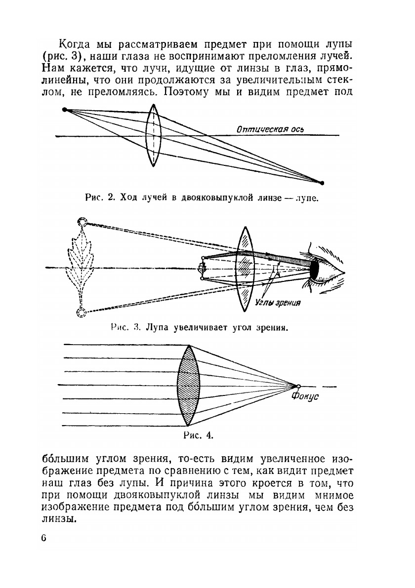 Не задумывались ли вы над тем, почему обычное плоское стекло не увеличивает рассматриваемый предмет, а лупа увеличивает его во много раз. В чём секрет увеличительных стёкол? Секрет кроется в том, что лупа увеличивает так называемый угол зрения. Это такой угол, который составляют две прямые, проведённые к глазу от крайних точек рассматриваемого предмета...