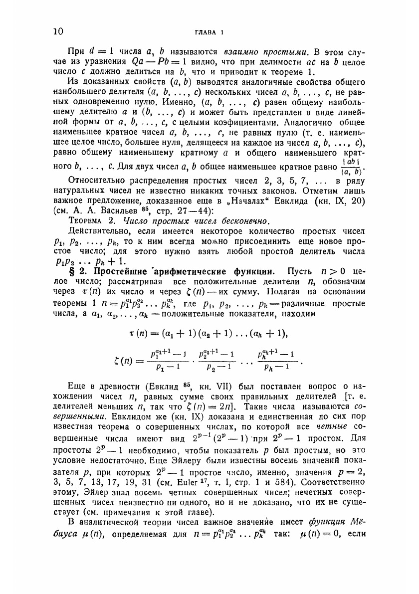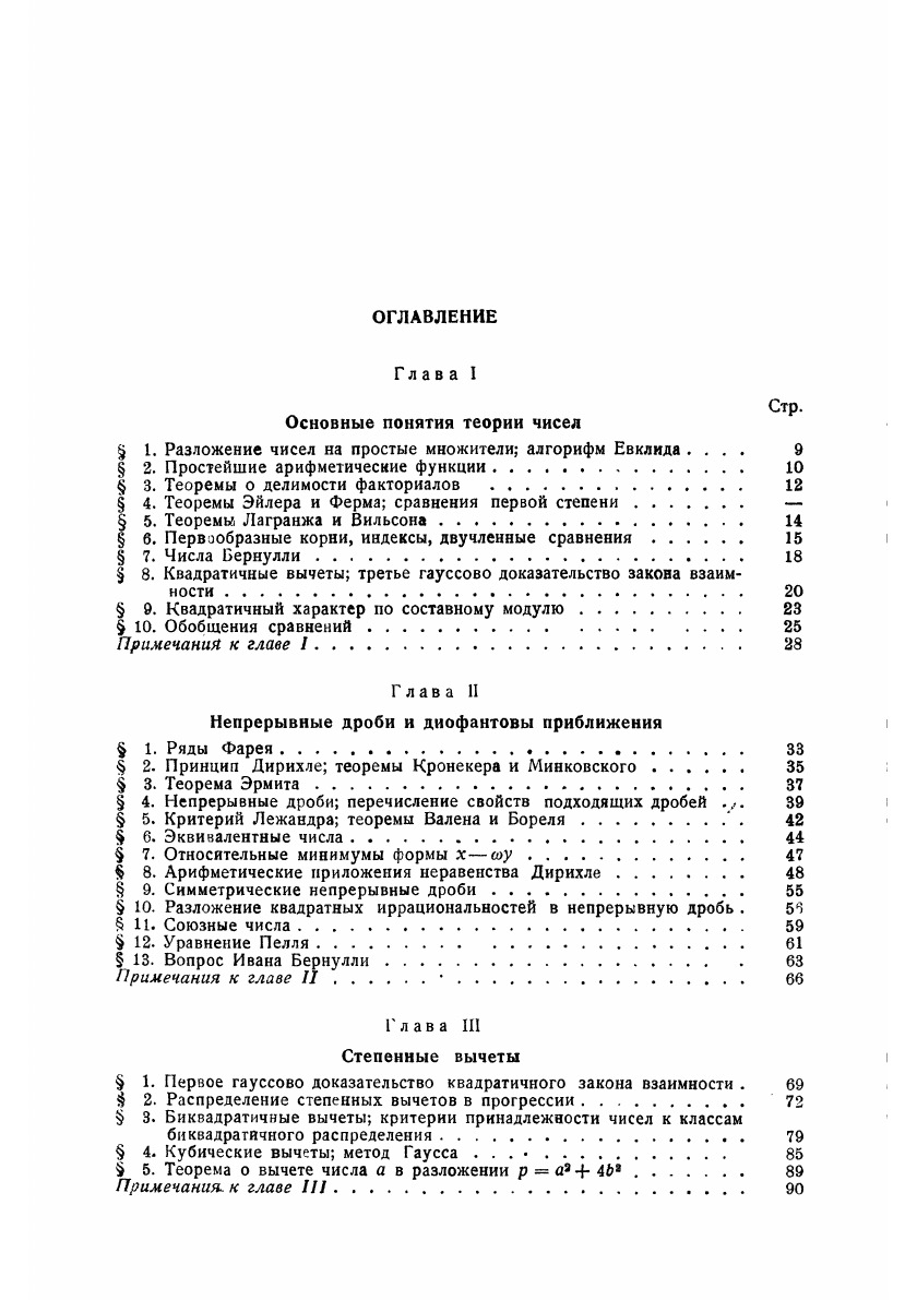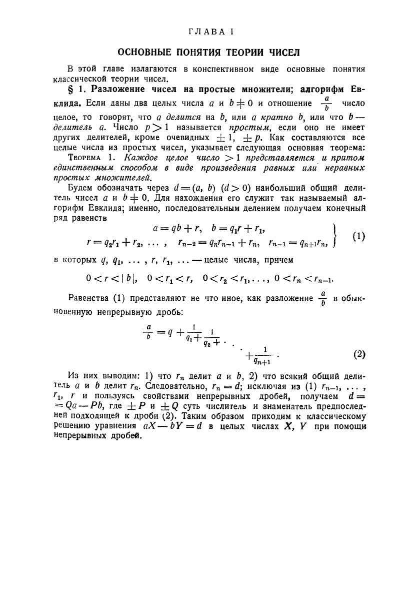 Заглавие «Элементарная теория чисел», данное настоящему реферату, не вполне отражает ту точку зрения, которая была принята при его составлении. В нем собрано все то из классической теории чисел и новых исследований, что осуществляется чисто арифметическим методом (т.е. без введения понятий анализа, геометрии, иррациональных и комплексных чисел). Этот материал удовлетворяет большей частью и требованию «элементарности» в обычном смысле этого слова. Иррациональные числа появляются лишь там, где они необходимы по самому существу дела (глава II и некоторые параграфы главы IV). Такая точка зрения принята потому, что алгебраические, геометрические и аналитические методы в теории чисел служат предметом особых рефератов этой серии