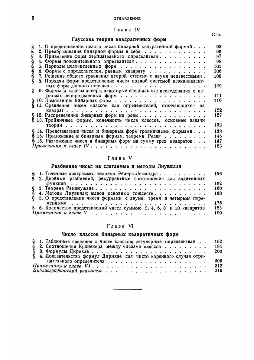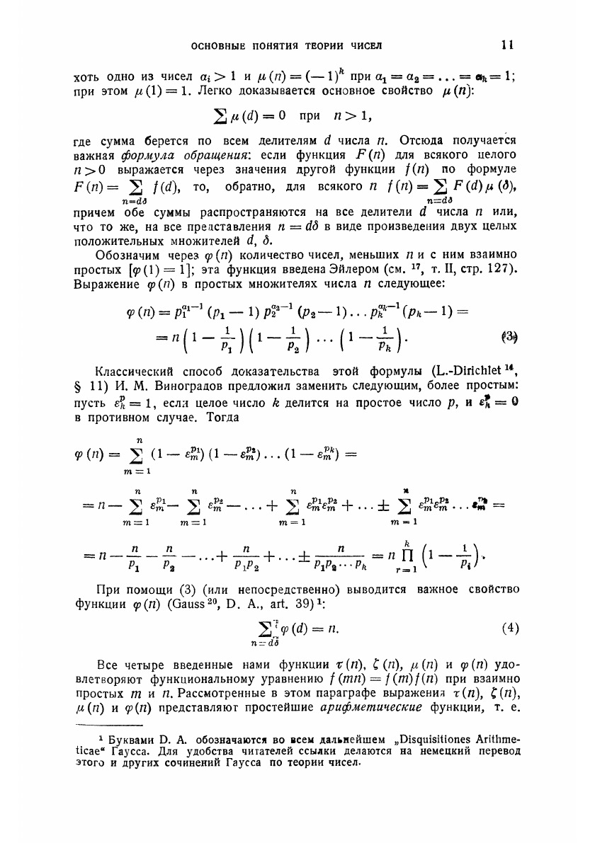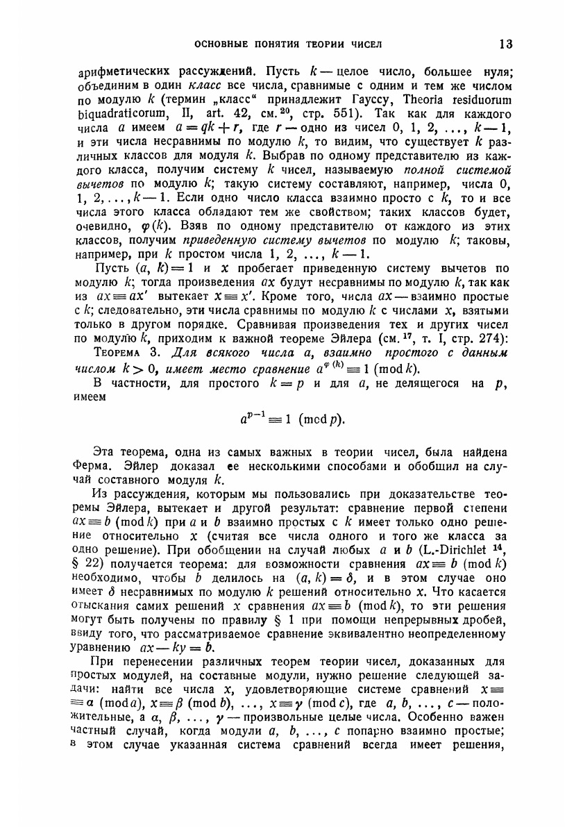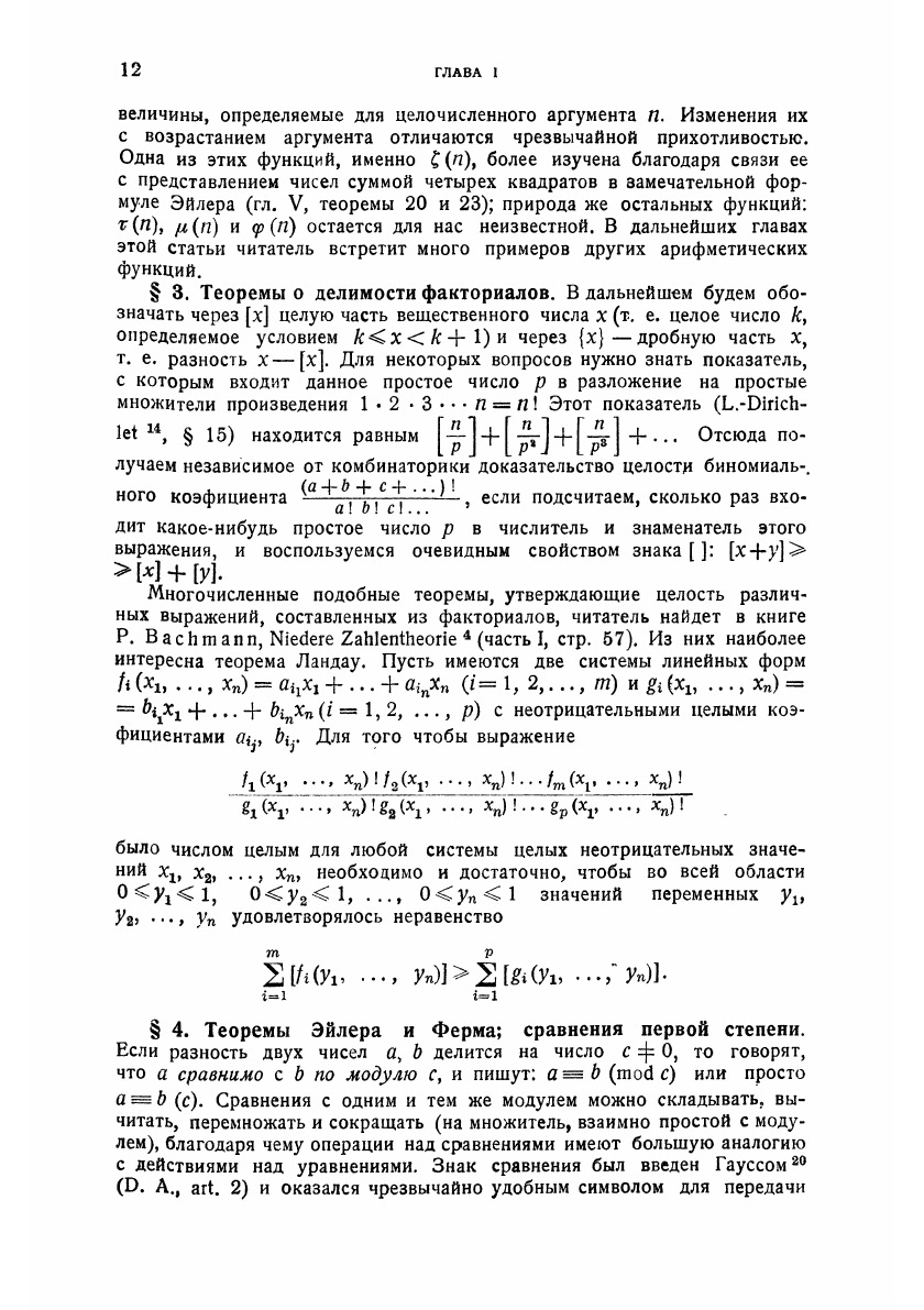 Заглавие «Элементарная теория чисел», данное настоящему реферату, не вполне отражает ту точку зрения, которая была принята при его составлении. В нем собрано все то из классической теории чисел и новых исследований, что осуществляется чисто арифметическим методом (т.е. без введения понятий анализа, геометрии, иррациональных и комплексных чисел). Этот материал удовлетворяет большей частью и требованию «элементарности» в обычном смысле этого слова. Иррациональные числа появляются лишь там, где они необходимы по самому существу дела (глава II и некоторые параграфы главы IV). Такая точка зрения принята потому, что алгебраические, геометрические и аналитические методы в теории чисел служат предметом особых рефератов этой серии