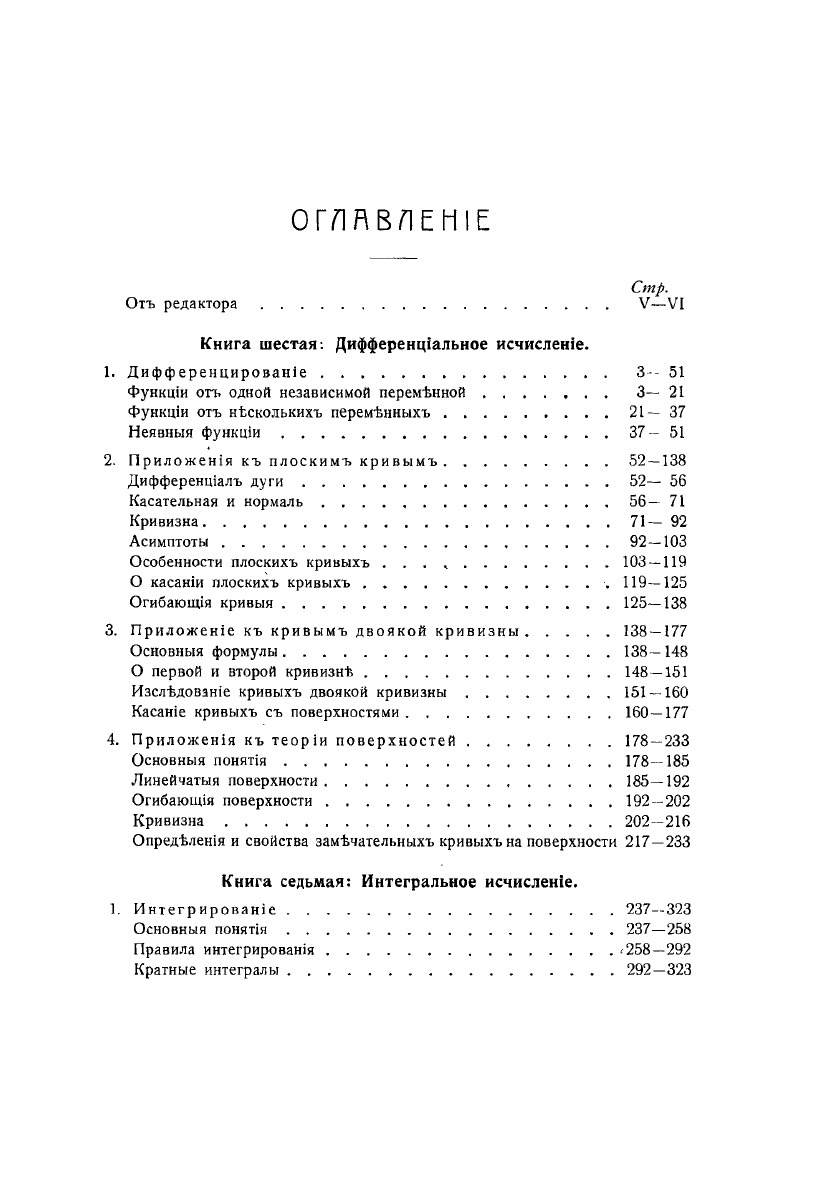 Перевод с немецкого с примечаниями и дополнениями профессора К.А.Поссе.Книга Э. Чезаро окажет драгоценные услуги учащимся. Принципы изложены в ней строго, приёмы вычисления тщательно разъяснены. Читатель может их усвоить на многочисленных примерах и упражнениях, помещённых в книгу. Эти упражнения, по способу их обработки, представляют собою образцы изящества, и не могут не возбудить у читателя научной любознательности и интереса к научным работам. От читателя книги Чезаро не требуется иных сведений, кроме обыкновенного курса Математики нашей средней школы и курса Аналитической Геометрии в том объеме, в каком она обыкновенно читается в наших Университетах.