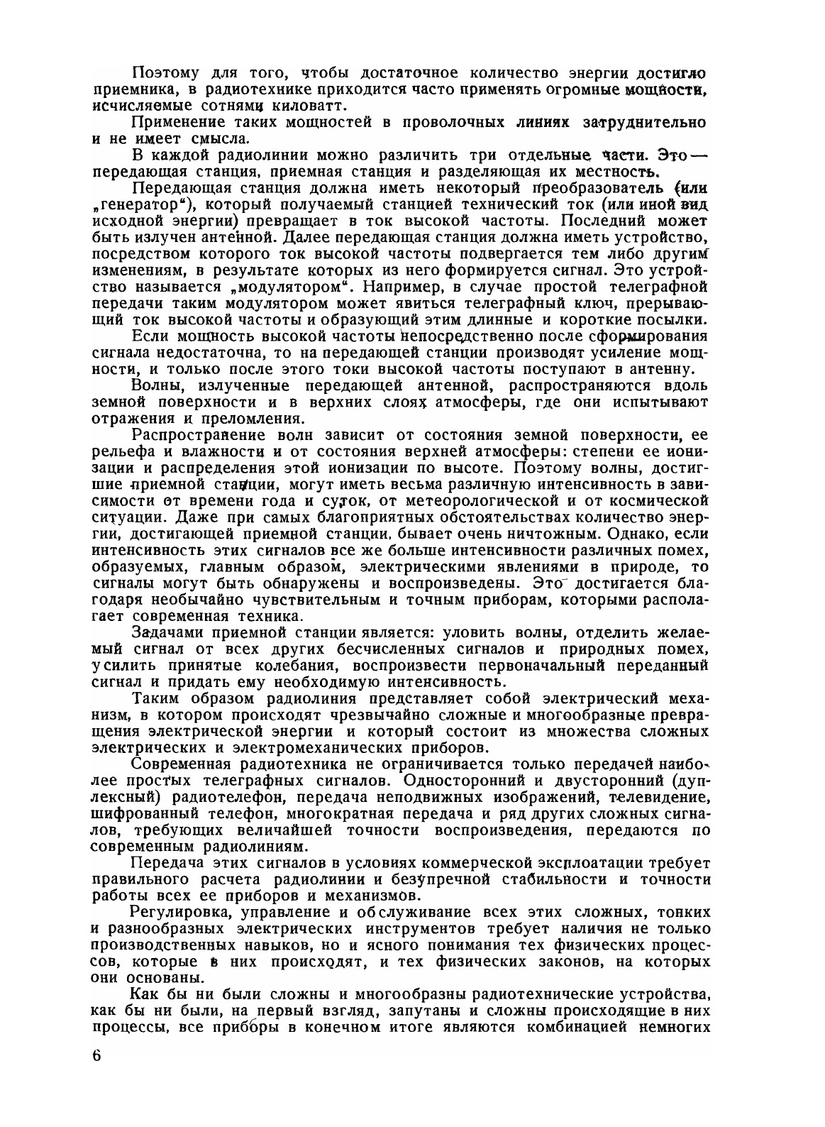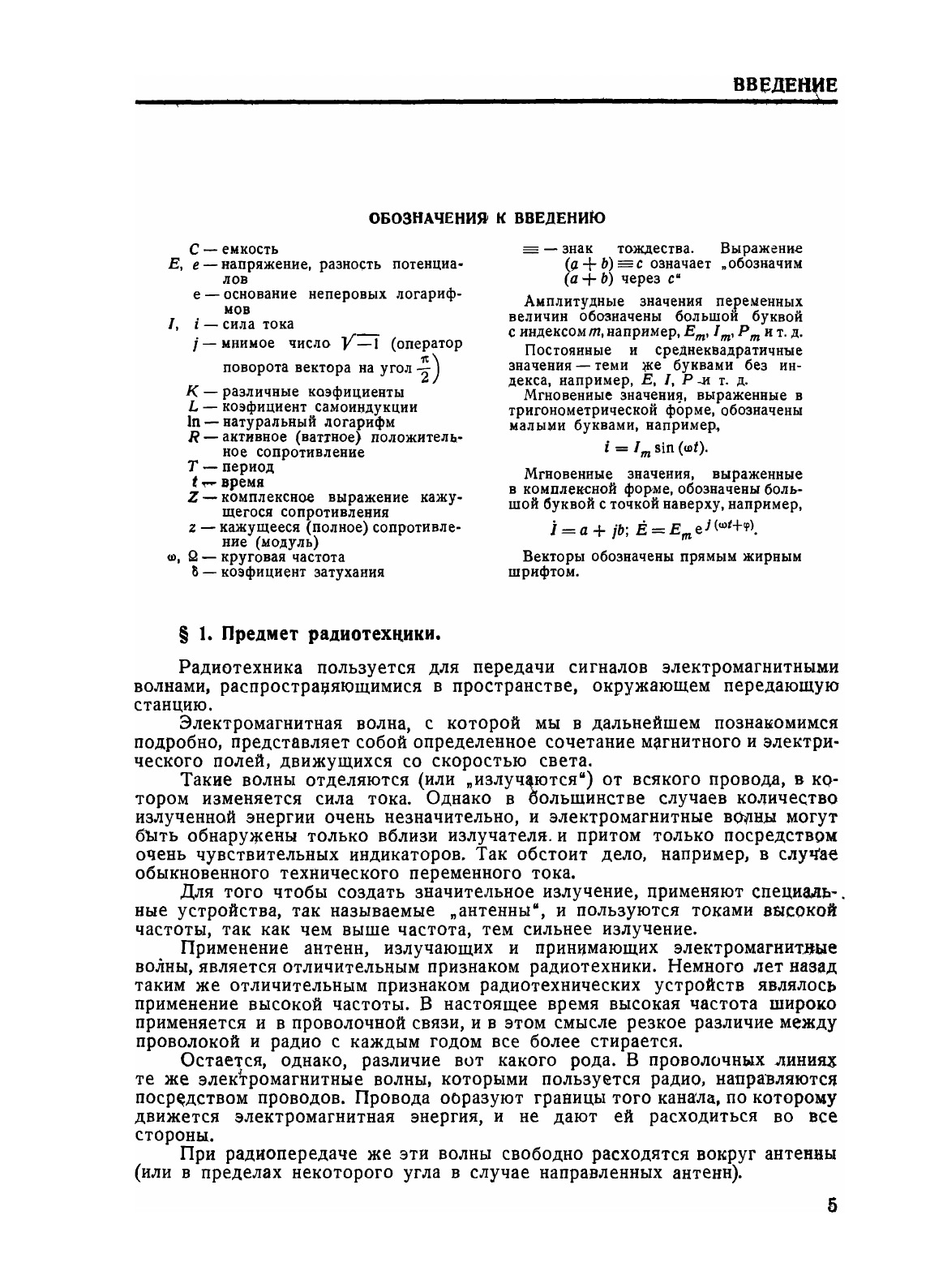 Эта книга написана в качестве учебного пособия по курсу радиотехники для техникумов связи. В основном она представляет- собою сокращенное и переработанное изложение материала, содержащегося в моей книге «Основы радиотехники», часть 1. Исключение представляет глава о фильтрах, которая сильно расширена по сравнению с тем, что было изложено в «Основах радиотехники». Теория фильтров изложена методом четырехполюсника. Можно еще отметить, что цепи с распределенными постоянными изложены раньше цепей с сосредоточенными постоянными. Это еделанб с целью осветить явления в цепях с сосредоточенными постоянными с более общей точки зрения. Характер текста позволяет, однако, в процессе преподавания принять и обратную последовательность изложения, если преподаватель более склонен, следовать установившейся традиции. Я стремился придать изложению такой характер, при котором физическое содержание явлений выступало бы на первый план и не затемнялось бы формальной стороной математической символики. С этой же целью я подробно остановился во введении на вопросе о физических представлениях, способствующих обобщенному пониманию процессов в колебательных цепях, и на физическом смысле символического метода. В конце книги даны некоторые приложения, которые могут быть полезны для вычислений. . .