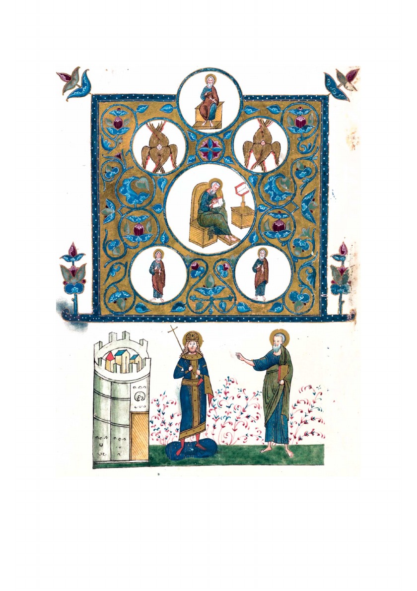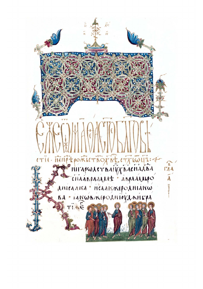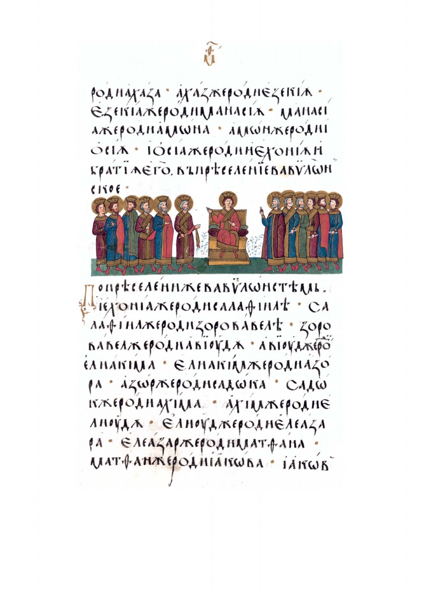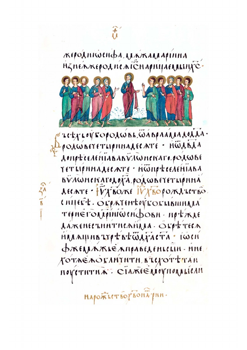 Текст сопровождают цветные иллюстрации с миниатюрами сюжета и орнаментами.