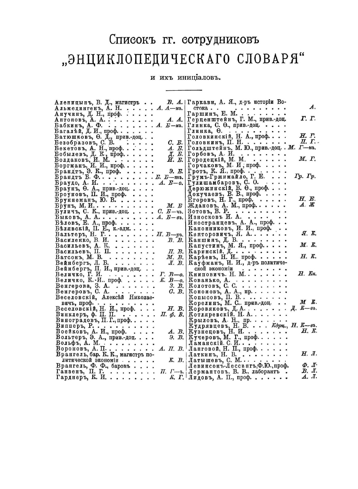Самая крупная дореволюционная русская универсальная энциклопедия, выпущенная акционерным издательским обществом «Ф. А. Брокгауз И. А. Ефрон». Состоит из 86 томов (82 основных и 4 дополнительных), выходивших в течение 1890-1907 годов. Первые 8 томов (до буквы «В») вышли под общей редакцией профессора И. Е. Андреевского и в основном содержали переводы на русский язык статей знаменитой немецкой энциклопедии Брокгауза «Konversations Lexikon». После кончины Андреевского новая редакция во главе с К. К. Арсеньевым и Ф. Ф. Петрушевским значительно увеличила число оригинальных статей и привлекла к сотрудничеству широкий круг общественно-политических деятелей либерального толка (от П. Н. Милюкова, В. И. Герье, Н. И. Кареева до легальных марксистов П. Б. Струве и М. И. Туган-Барановского, раздел философии вел крупнейший русский религиозный философ Вл. С. Соловьев), а также таких крупнейших ученых как Д. И. Менделеев, А. И. Бекетов, А. И. Воейков, Д. И. Анучин, Ю. М. Шокальский, Н. М. Книпович, А. О. Ковалевский, А. И. Советов, В. С. Соловьев и др.Ежегодно выходили в свет 4-5 томов.На сегодня Энциклопедический словарь Брокгауза и Ефрона является общественным достоянием: хотя в научно-техническом плане энциклопедия уже сильно устарела, многие её статьи по-прежнему представляют исключительную историческую ценность.