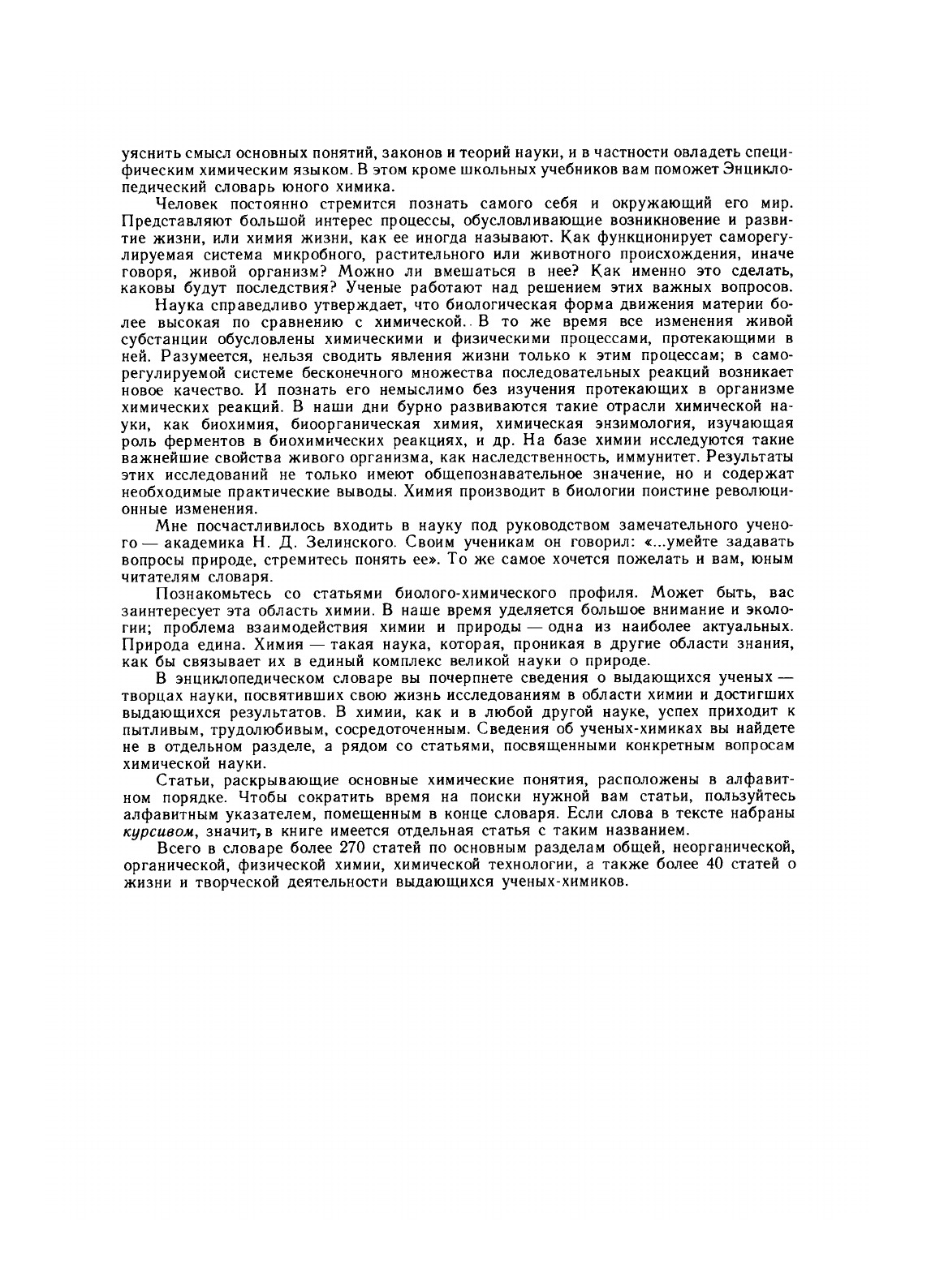 Словарь раскрывает основные понятия химической науки, рассказывает об истории ее развития на протяжении веков, о большом значении химии для современной хозяйственной деятельности человечества, о той важной роли, которую химия играет в ускорении научно-технического прогресса в нашей стране. В книге рассказывается о жизни и деятельности выдающихся ученых, внесших значительный вклад в развитие химической науки.Читатели познакомятся с важнейшими химическими профессиями и узнают, где можно их приобрести, а также найдут практические рекомендации о проведении интересных химических опытов.Издание иллюстрировано цветными рисунками, фотографиями и схемами.1-е издание выпущено в 1982 г.Для школьников среднего и старшего возраста.Издается по предложению книготорговых организаций.
