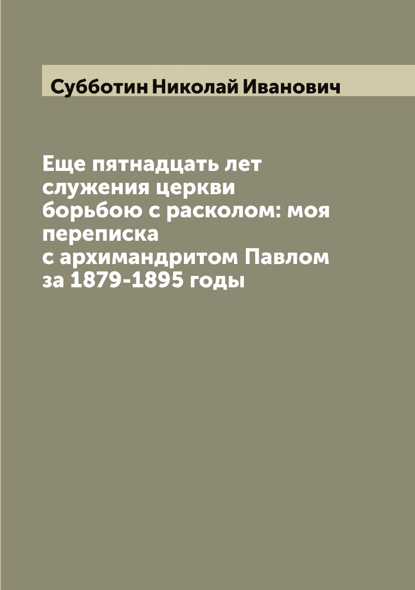 Печатная книга «Еще пятнадцать лет служения церкви борьбою с расколом: моя переписка с архимандритом Павлом за 1879-1895 годы» в мягкой обложке, язык - русский. В книге 262 страниц, она напечатана на белой офсетной бумаге плотностью 80 г/м². Формат издания — 148x210 мм. Все книги аккуратно упаковываем в прочный трёхслойный непрозрачный картонный конверт.
