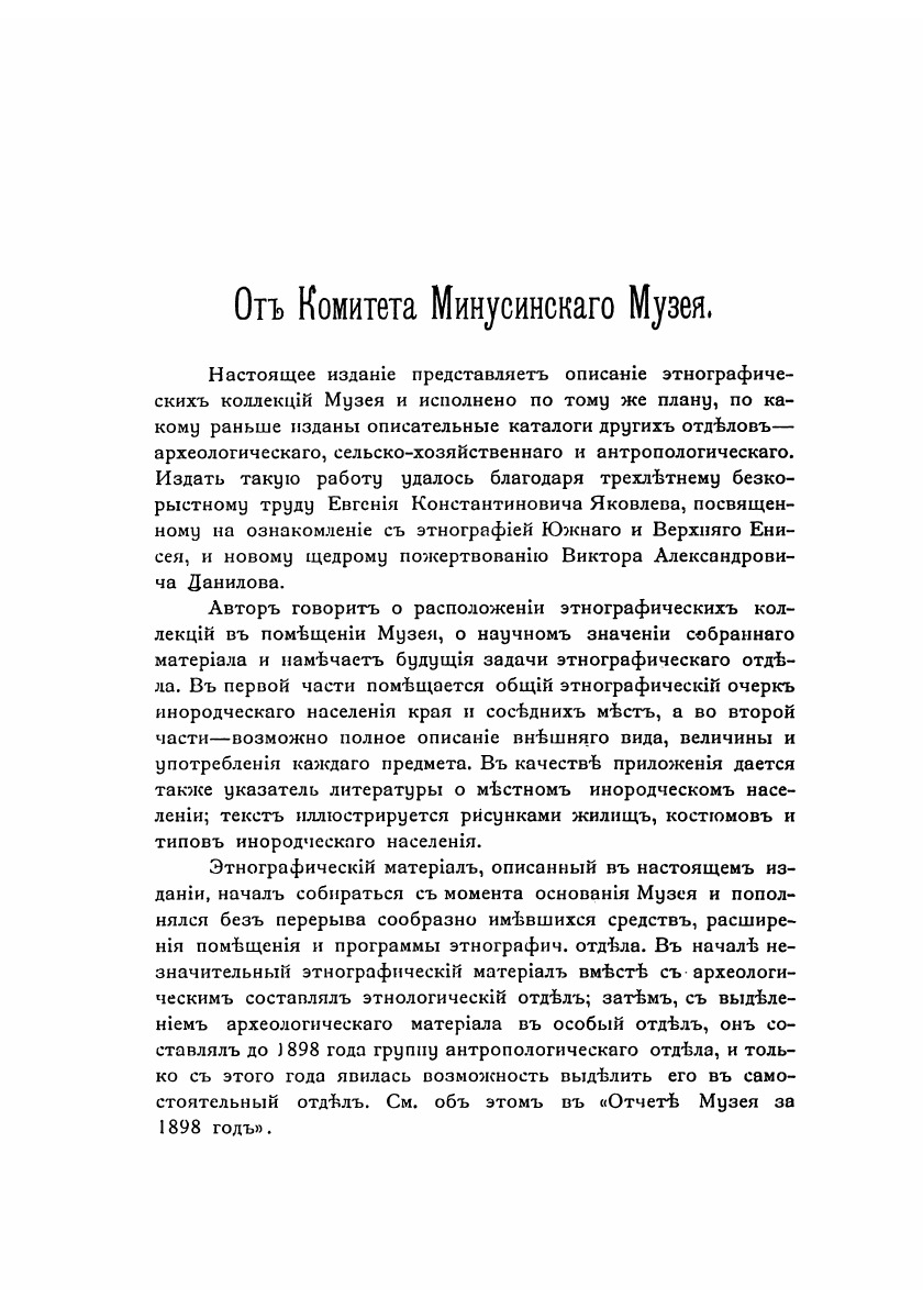 Этнографический обзор инородческого населения долины Южного Енисея и объяснительный каталог Этнографического отдела Музея.