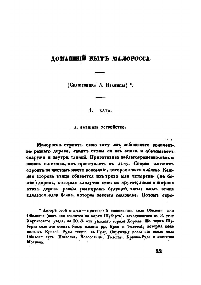 Собрание местных этнографических описаний России. Домашний быт малоросса, Полтавской губернии Хорольского уезда