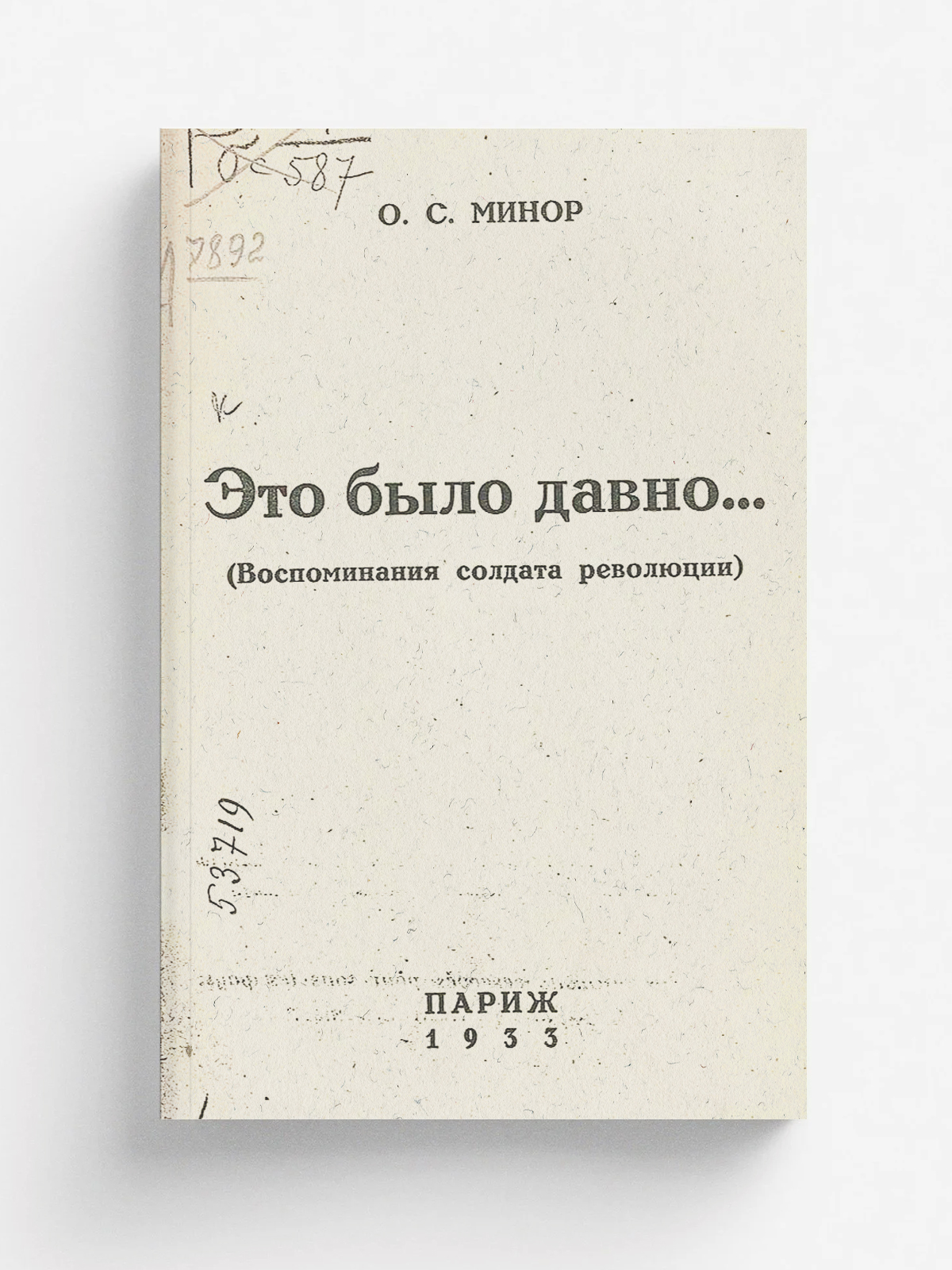 Минор, Осип Соломонович. Это было давно... (Воспоминания солдата революции) / О. С. Минор. — Париж : [б. и.], 1933. — 143 с., 1 л. портр.; 19 см.