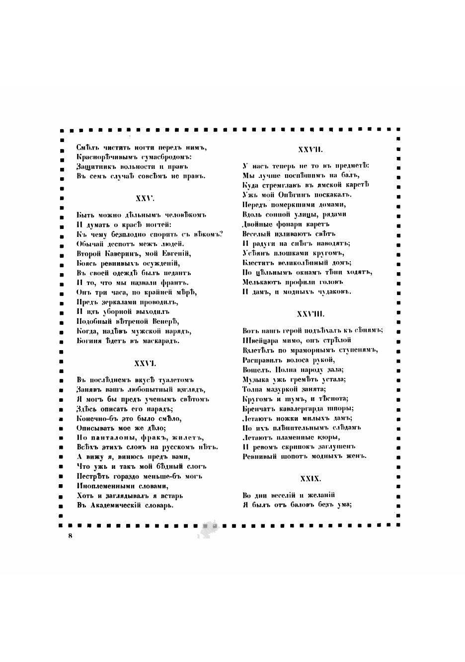Печатная книга «Евгений Онегин» в мягкой обложке, язык - русский. В книге 119 страниц, она напечатана на белой офсетной бумаге плотностью 80 г/м². Формат издания — 165x235 мм. Все книги аккуратно упаковываем в прочный трёхслойный непрозрачный картонный конверт.