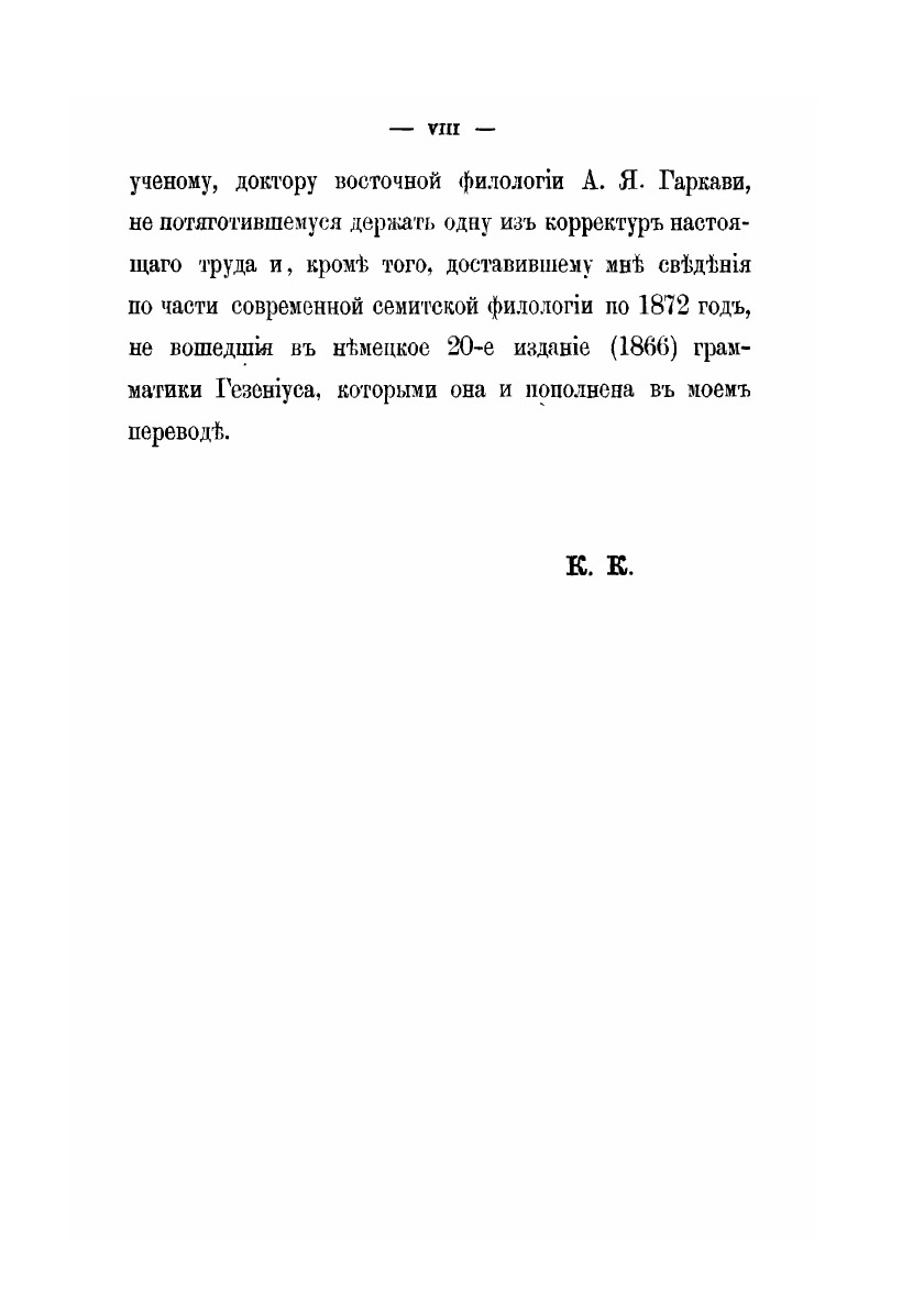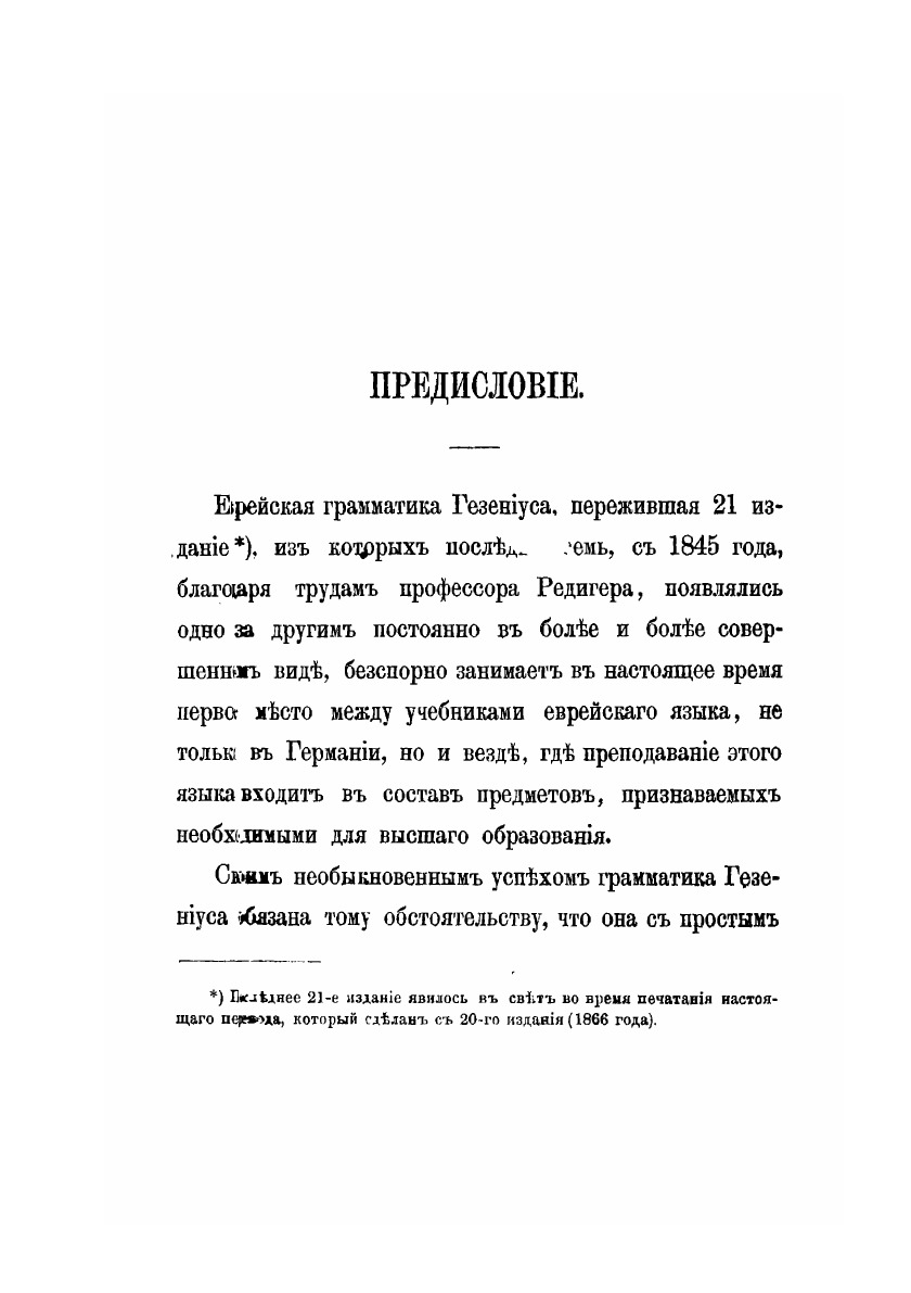 Еврейская грамматика Гезениуса бесспорно занимает в настоящее время первое место между учебниками еврейского языка (иврит), не только в Германии, но и везде, где преподавание этого языка входит в состав предметов, признаваемых необходимыми для высшего образования.Своим необыкновенным успехом грамматика Гезениуса обязана тому обстоятельству, что она с простым материалом учебника соединяет и высшие филологические сведения об еврейском языке, добытые современной наукой, и что она не оставляет, таким образом, учащегося только при вещественном, так сказать, запасе форм, усваиваемых памятью, но, в то же время, дает ему возможность понимать и историческое их значение