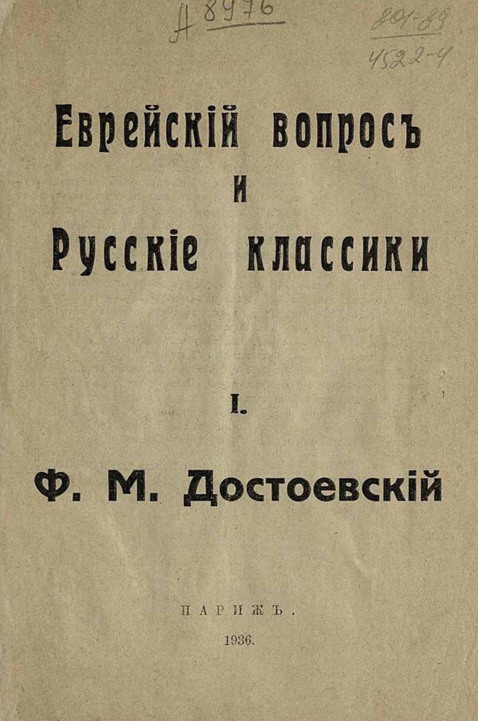 Еврейский вопрос и русские классики. — Париж : Книгоноша, 1936. — 22 см. № 1: Ф. М. Достоевский. — 1936. — 18 см.