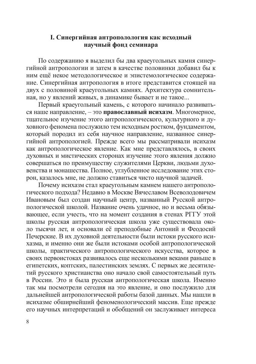В сборнике представлены материалы заседаний научного семинара, ведущего работу в ИФ РАН с мая 2005 г. Обсуждаемая тематика имеет своим ядром синергийную антропологию – новое направление, выдвинутое и развиваемое руководителями семинара, но им не ограничивается, охватывая спектр актуальной антропологической проблематики: кризис классической европейской антропологии; наследие русской философии в синергийно-антропологической перспективе; неклассические подходы к проблеме Человека; антропологические аспекты эстетики и искусства; психологии и психотерапии и различных гуманитарных практик. Особое внимание уделяется переосмыслению статуса антропологии, ее структурных и методологических оснований.