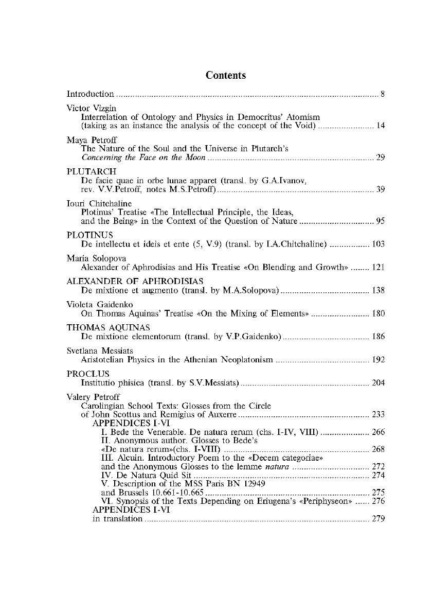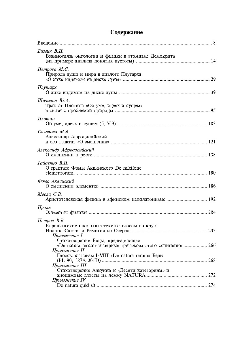 Настоящий выпуск тематически продолжает сборник «Философия природы в античности и в средние века. Часть первая». Книга включает авторские статьи, переводы с латинского и древнегреческого языков и комментарии к ним. Представлены новые переводы трактатов «О лике видимом на диске луны» Плутарха, «О смешении и росте» Александра Афродисийского, «Об уме, идеях и сущем» (5, V.9.) Плотина, «Элементы физики» Прокла, «О смешении элементов» Фомы Аквинского, а также отрывков из средневековых натурфилософских текстов.