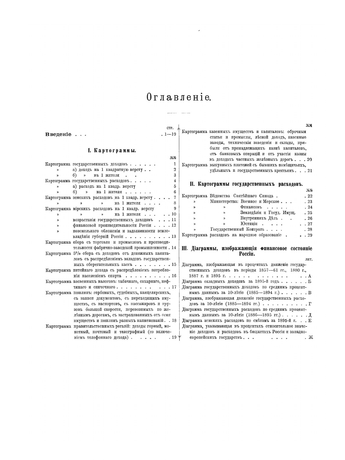 Наглядное графическое изображение финансового состояния России. Географическое распределение государственных доходов и расходов и местных: земских и мирских расходов. Распределение губерний Европейской России по степени финансовой и экономической производительности. Движение государственных расходов за 10-летие (1885-1895 гг.). Сравнение бюджета России с некоторыми из западно-европейских государств.