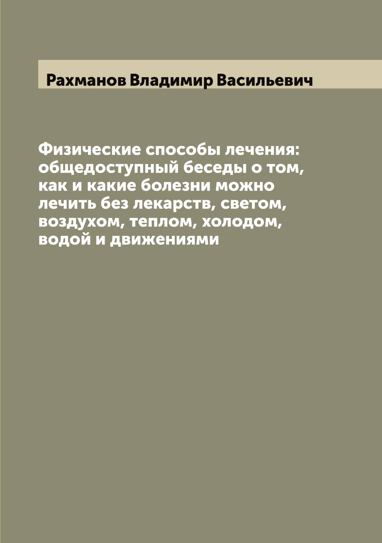 Печатная книга «Физические способы лечения: общедоступный беседы о том, как и какие болезни можно лечить без лекарств, светом, воздухом, теплом, холодом, водой и движениями» в мягкой обложке, язык - русский. В книге 293 страниц, она напечатана на белой офсетной бумаге плотностью 80 г/м². Формат издания — 148x210 мм. Все книги аккуратно упаковываем в прочный трёхслойный непрозрачный картонный конверт.