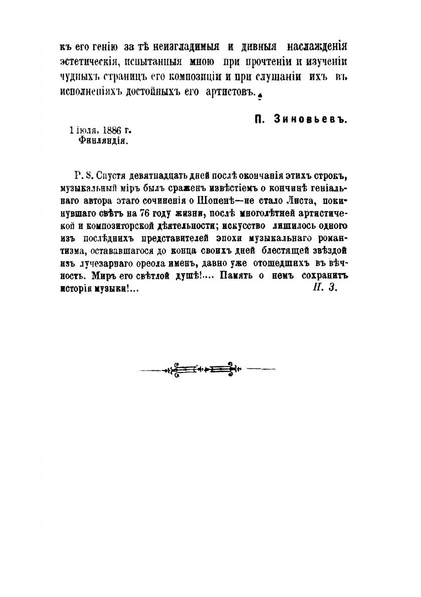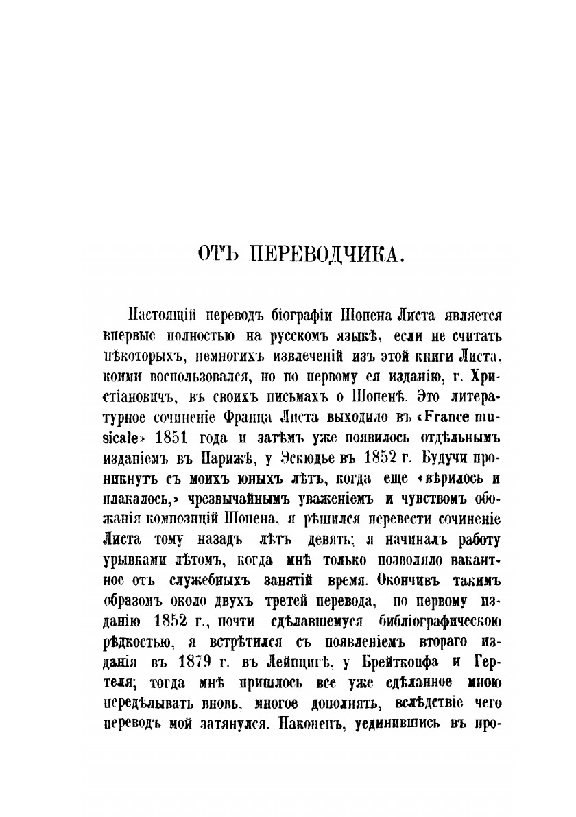 Фредерик Шопен. Сочинение Франца Листа. Перевод с французского с дополнениями П. Зиновьева, профессора Санкт-Петербургской консерватории.