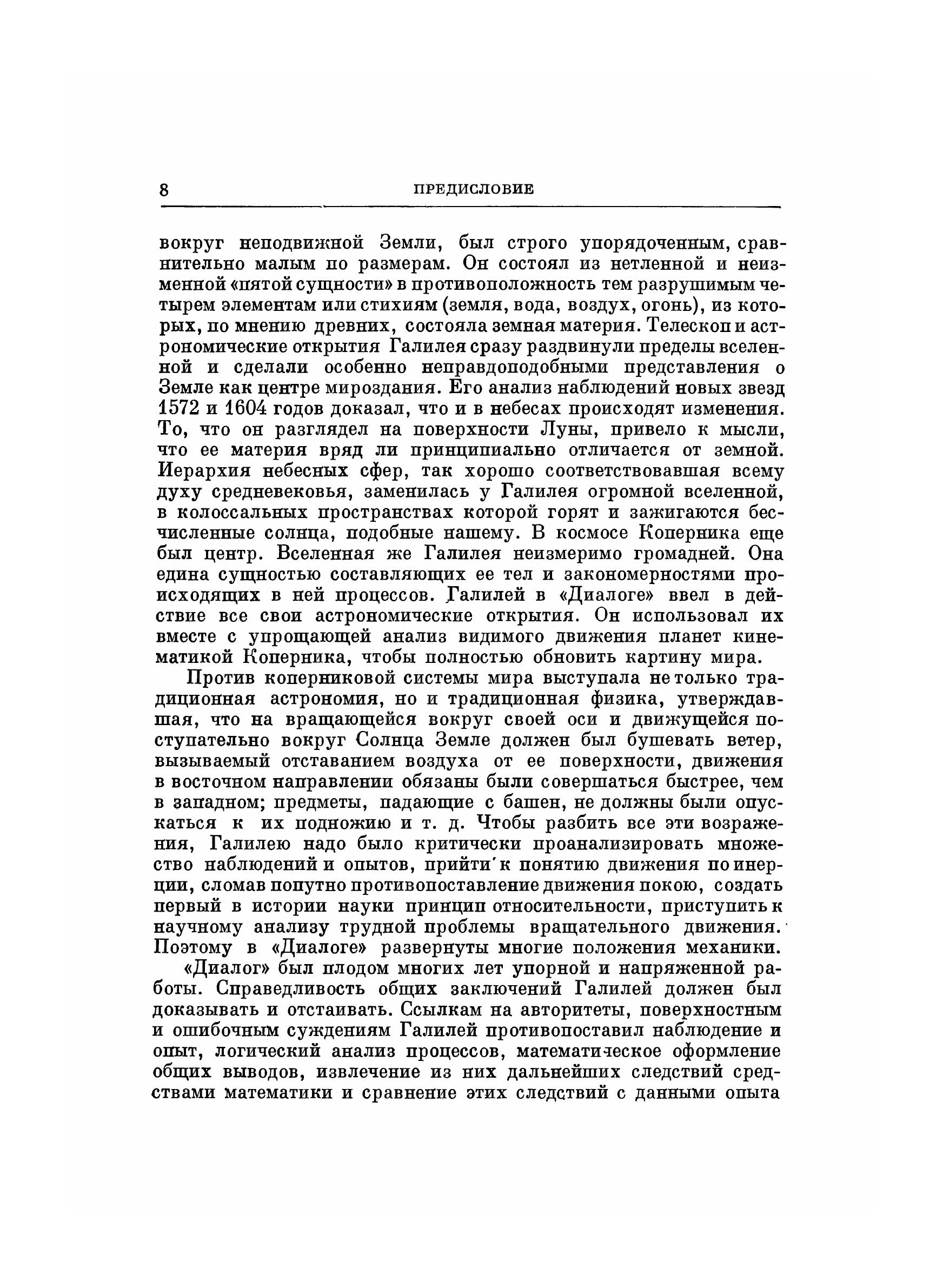 В нашем издании использованы переводы главных произведений Галилея, «Диалога» и «Бесед», а также «Рассуждения о телах, пребывающих в воде», выполненные при участии и под редакцией А. Н. Долгова. Их литературные достоинства несомненны, но в них допущен ряд неточностей и отклонений от оригинала, не всегда последовательно выдержана терминология, она отчасти модернизована в ущерб точности. Это относится особенно к первым трем дням «Бесед». При подготовке настоящего собрания сочинений Галилео Галилея все переводы были сверены с оригиналом и отредактированы И. Б. Погребысским. Новым является почти весь аппарат комментариев и примечаний. Некоторые комментарии оказалось целесообразным дать в виде отдельных статей, и они включены в отдел Приложений, дополнительно к биографической статье, написанной Б. Г. Кузнецовым, и библиографией изданий трудов Галилея и работ о нем.