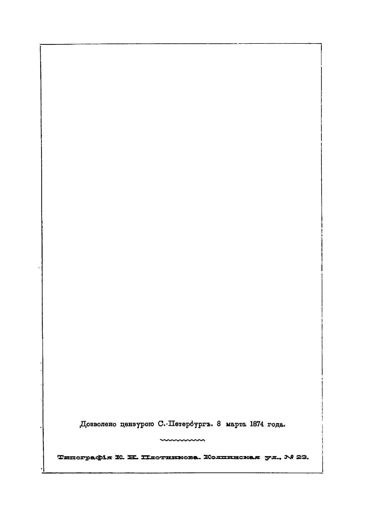 Эта книга — репринт оригинального издания (издательство "Санкт-Петербург: Типография К.Н. Плотникова", 1874 год), созданный на основе электронной копии высокого разрешения, которую очистили и обработали вручную, сохранив структуру и орфографию оригинального издания. Редкие, забытые и малоизвестные книги, изданные с петровских времен до наших дней, вновь доступны в виде печатных книг.