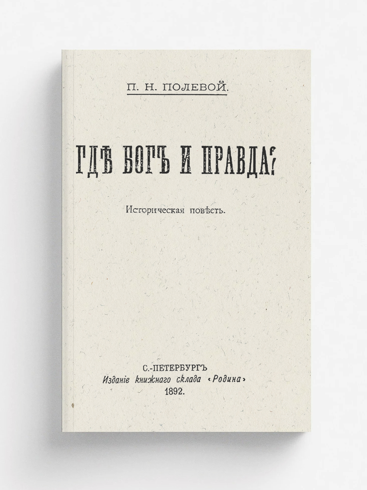 Полевой, Петр Николаевич (1839–1902). Где бог и правда? : Ист. повесть / П. Н. Полевой. — Санкт-Петербург : изд. кн. скл. «Родина», 1892. — 236 с.; 20.