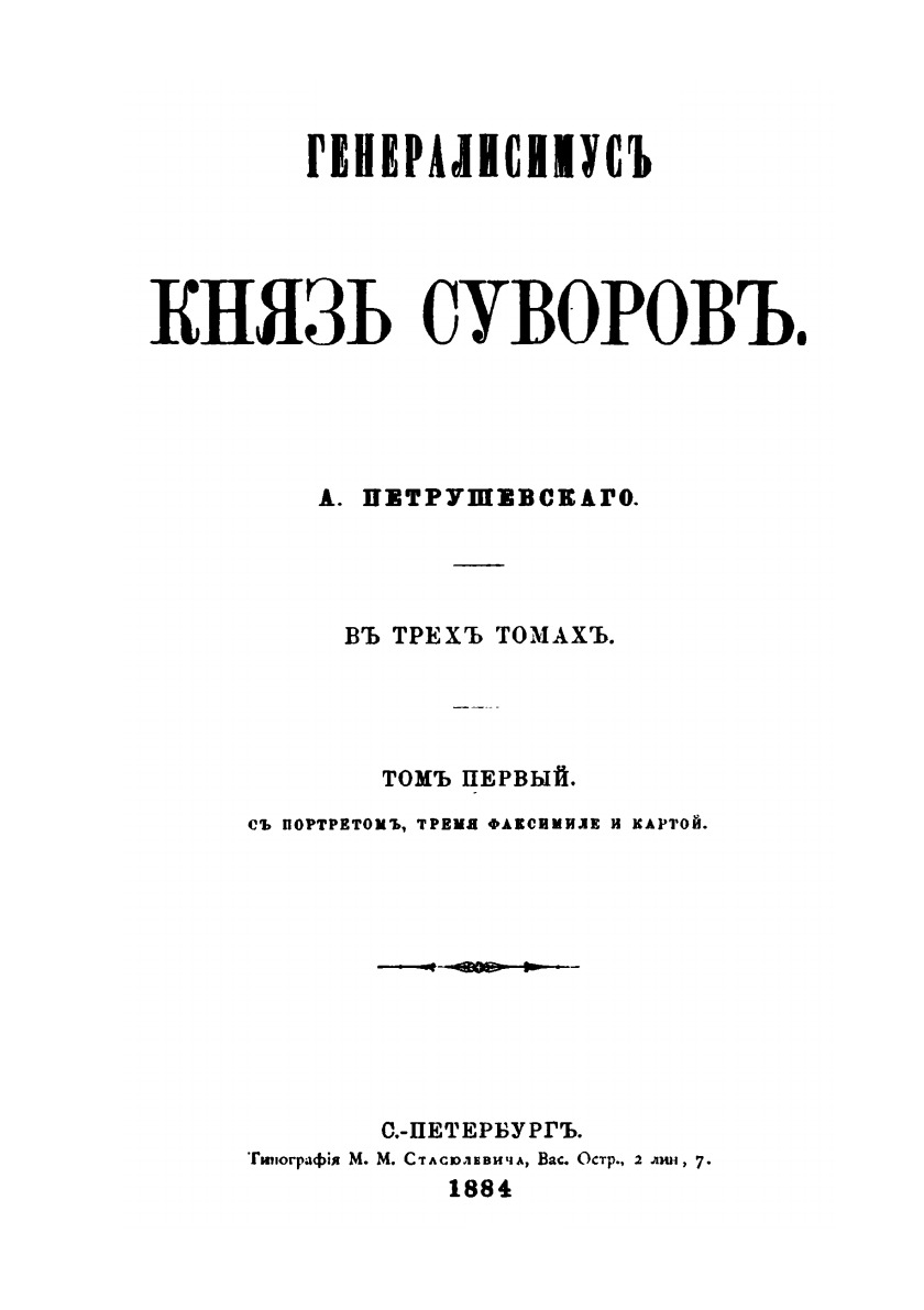 Генералисимус князь Суворов.В трех томах. Том 1. С портретом, тремя факсимиле и картой.