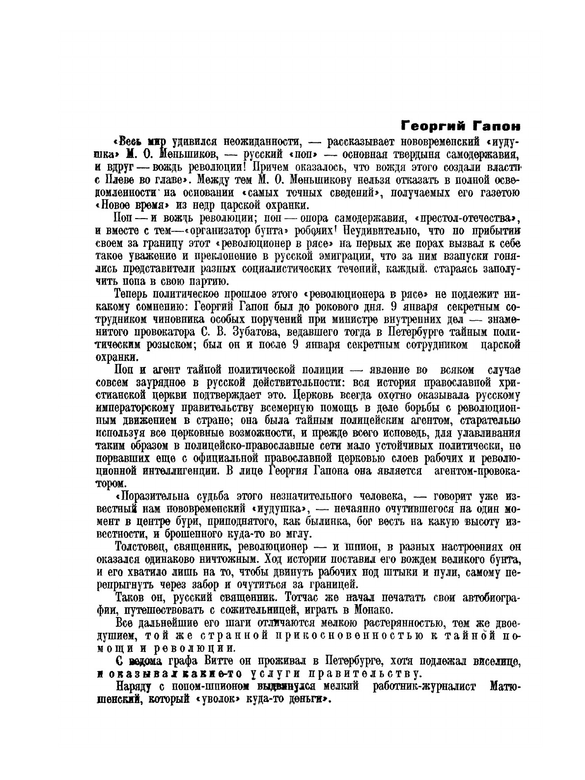 Имя Георгия Гапона навсегда связано с началом революции 1905-1907 гг. в России. В прошлом о нем говорилось как об агенте охранки и сегодня эта оценка по-прежнему господствует. Автор рассматривает этот вопрос и на него дает свой вариант ответа. Исследуя связи Гапона с различными революционными партиями России, его контакты и деятельность за границей, Гапон характеризуется как политическая личность на основе трех периодов его жизни - до 9 января 1905 г., в эмиграции и в последние месяцы перед смертью