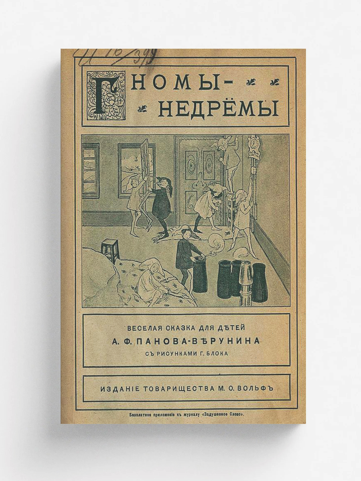 Панов, Александр Федорович (1876–). Гномы-недремы : Веселая сказка для детей А. Ф. Панова-Верунина / С рис. Г. Блока. — Санкт-Петербург ; Москва : т-во М. О. Вольф, 1910 (Санкт-Петербург). — 16 с. : ил.; 24.