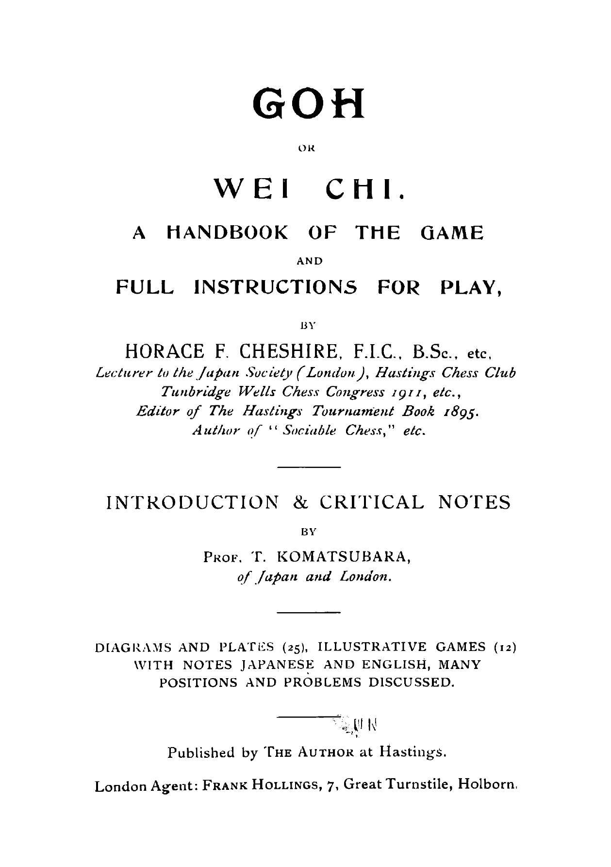Печатная книга «Goh or wei chi: a handbook of the game and full instructions for play» в мягкой обложке, язык - английский. В книге 174 страниц, она напечатана на белой офсетной бумаге плотностью 80 г/м². Формат издания — 148x210 мм. Все книги аккуратно упаковываем в прочный трёхслойный непрозрачный картонный конверт.