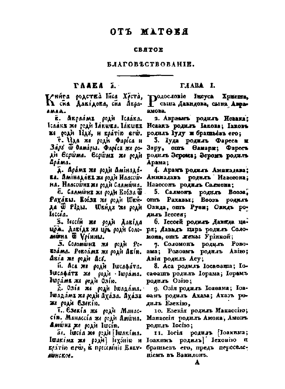 Новый Завет издания 1822 года, параллельно на славянском (кириллица) и русском (дореформенном), языках.