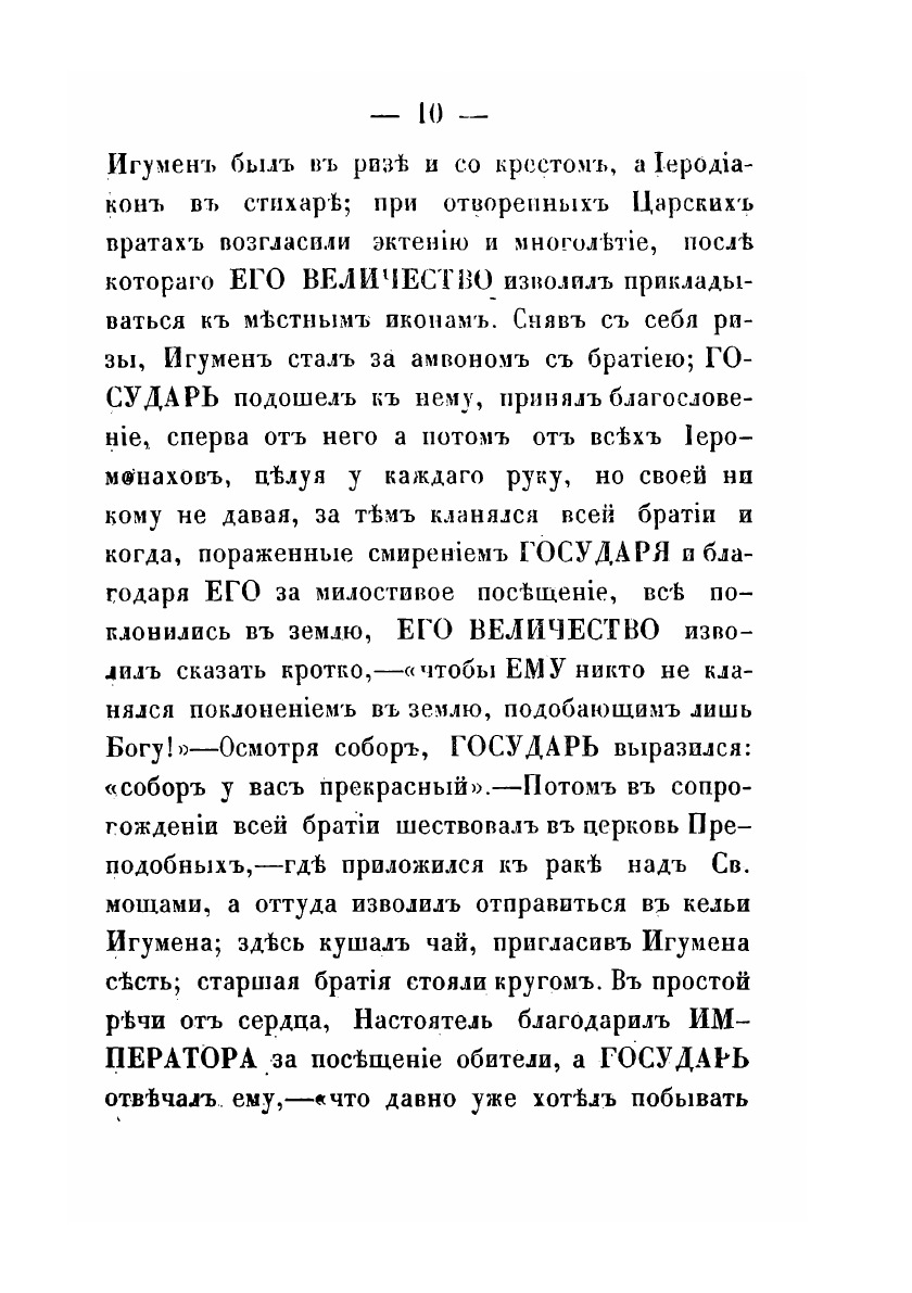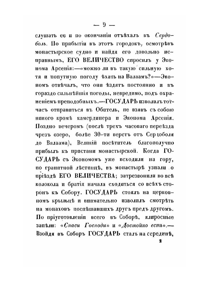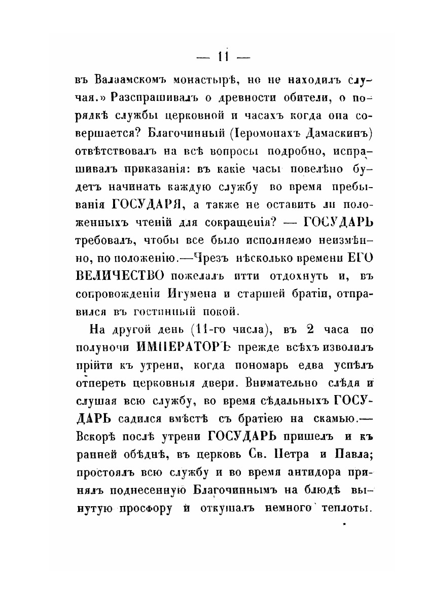 В книге описана история посещения 1819 году Валаамского монастыря императором Александром I. Император провел в монастыре трое суток, будучи человеком набожным, постясь и творя молитву. Государь настолько остался доволен визитом на Валаам, что в 1822 году монастырь был возведен в I класс и дарованы ему были земли, что позволило еще более серьезно развить строительную деятельность на островах.