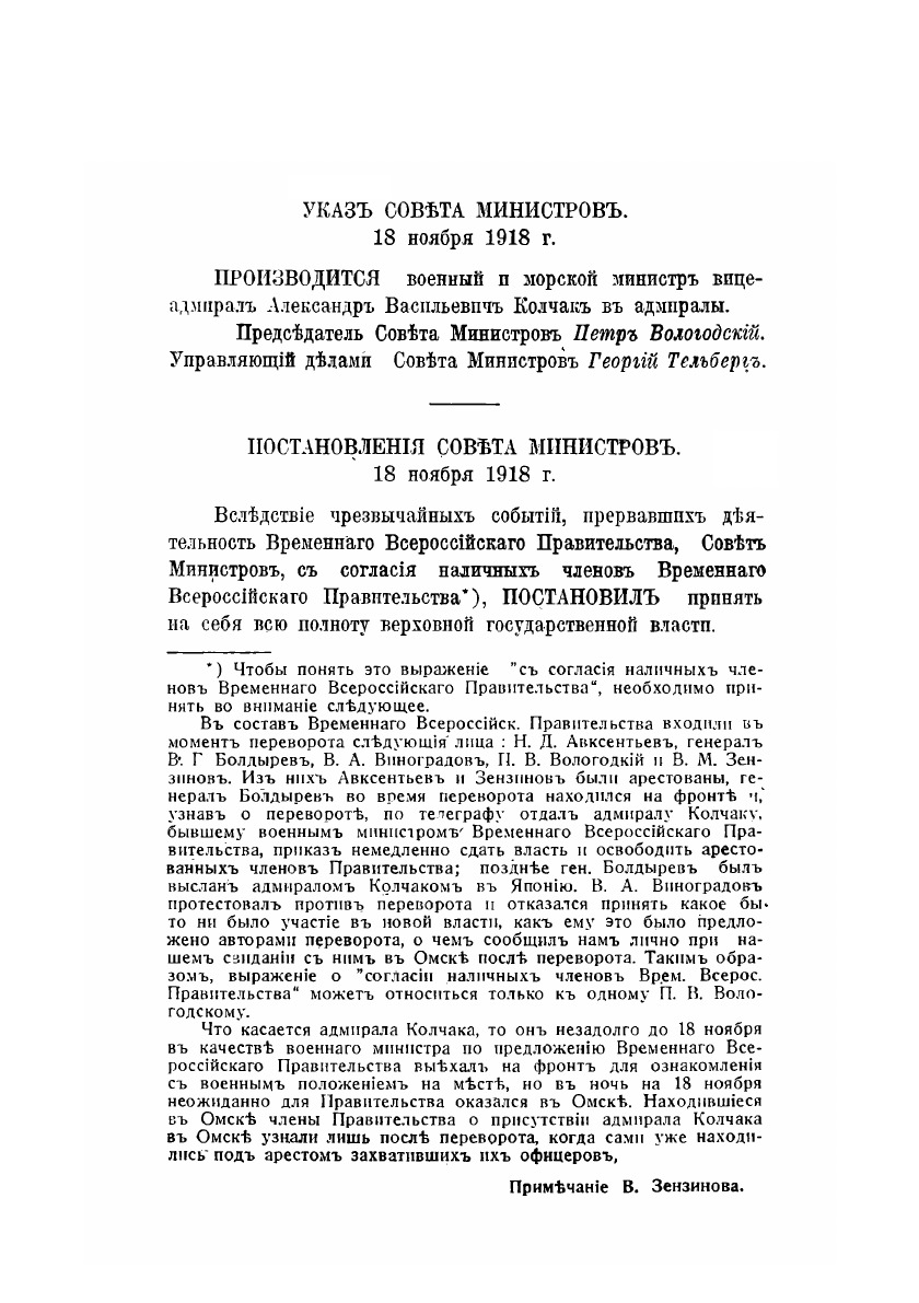 Государственный переворот адмирала Колчака в Омске. 18 ноября 1918 года. Сборник документов.