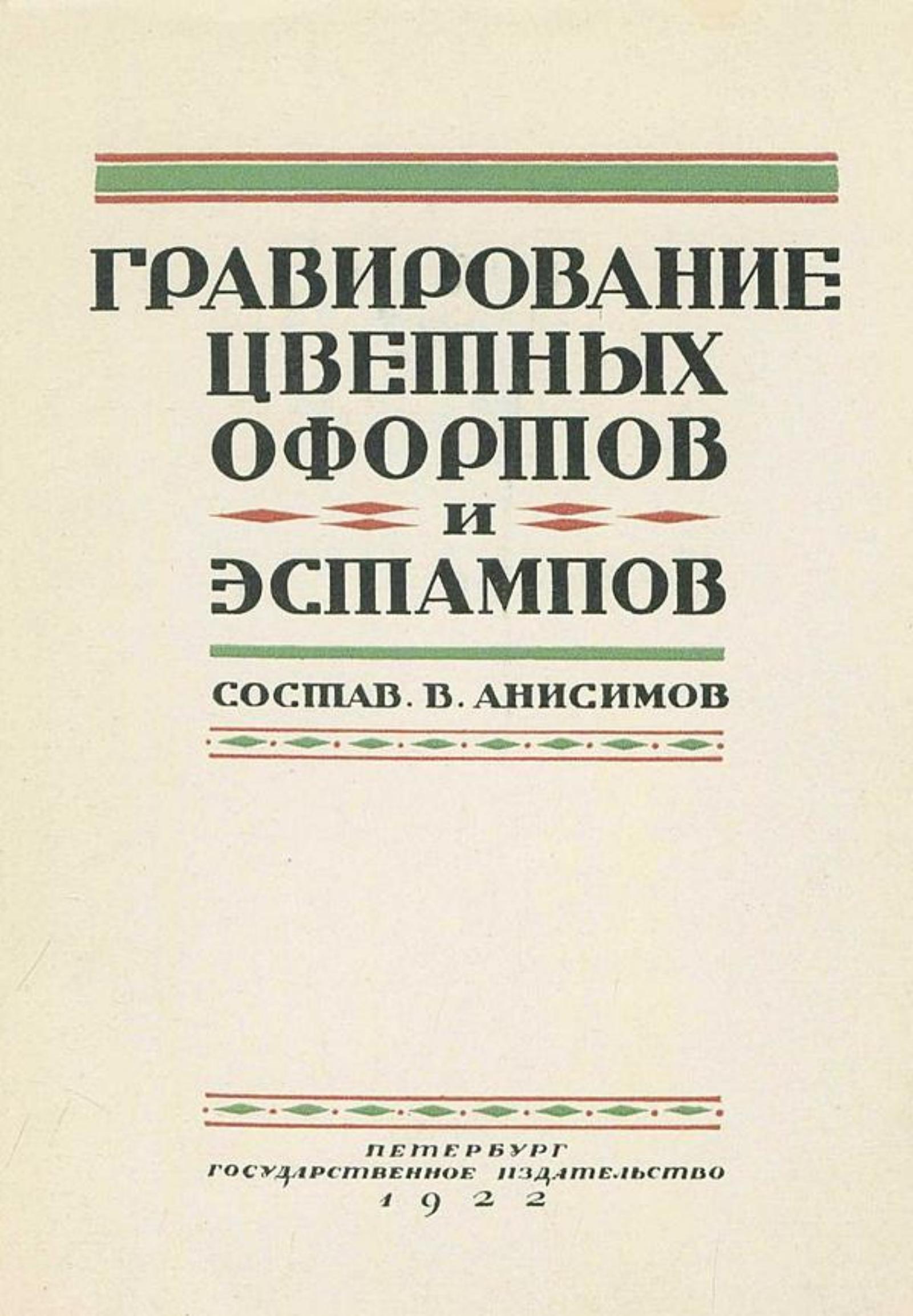 Гравирование цветных офортов и эстампов [Текст] / сост. В. Анисимов. — Петербург : Гос. изд-во, 1922. — 94 с. : ил.; 21 см.