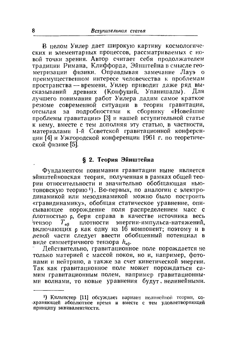 Книга представляет собой перевод лекций известного американского физика-теоретика Дж. Уилера в Международной летней школе физики имени Энрико Ферми в Варенне (Италия); в дополнении помещены оригинальные статьи автора и других крупных зарубежных учёных таких как Мак-Витти и Мизнер.В целом книга содержит изложение ряда проблем гравитации, космологии и теории элементарных частиц. Основное внимание уделяется попытке объединенного описания гравитационного и электромагнитного полей, включающего топологические обобщения; обсуждаются также такие актуальные вопросы, как взаимные превращения гравитации и элементарных частиц, роль нейтрино и гравитационных волн в общем балансе энергии во Вселенной.Книга рассчитана на физиков и астрономов, математиков.