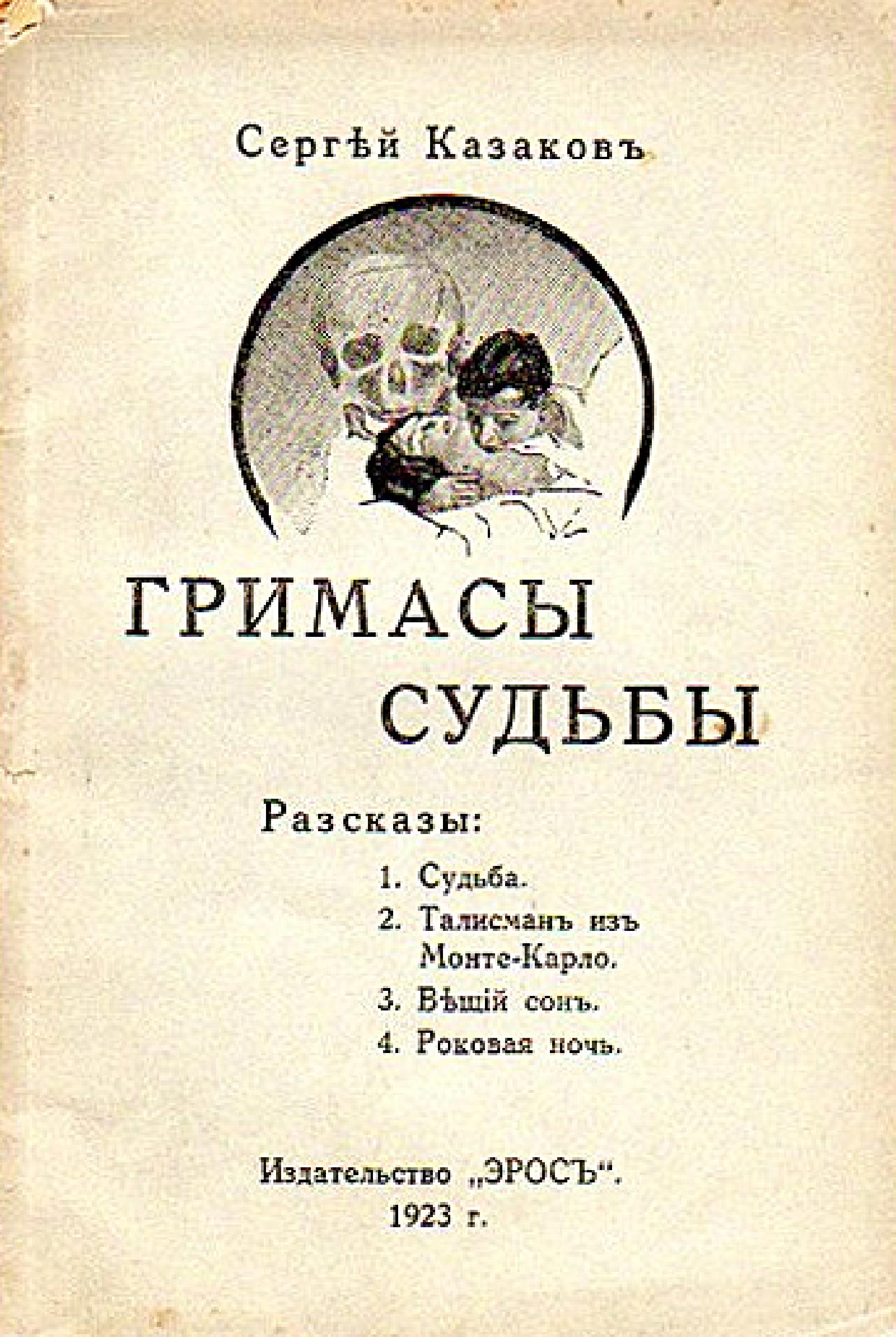 Казаков, Сергей. Гримасы судьбы : Рассказы. — [Берлин] : Эрос, 1923. — 47 с.; 20 см