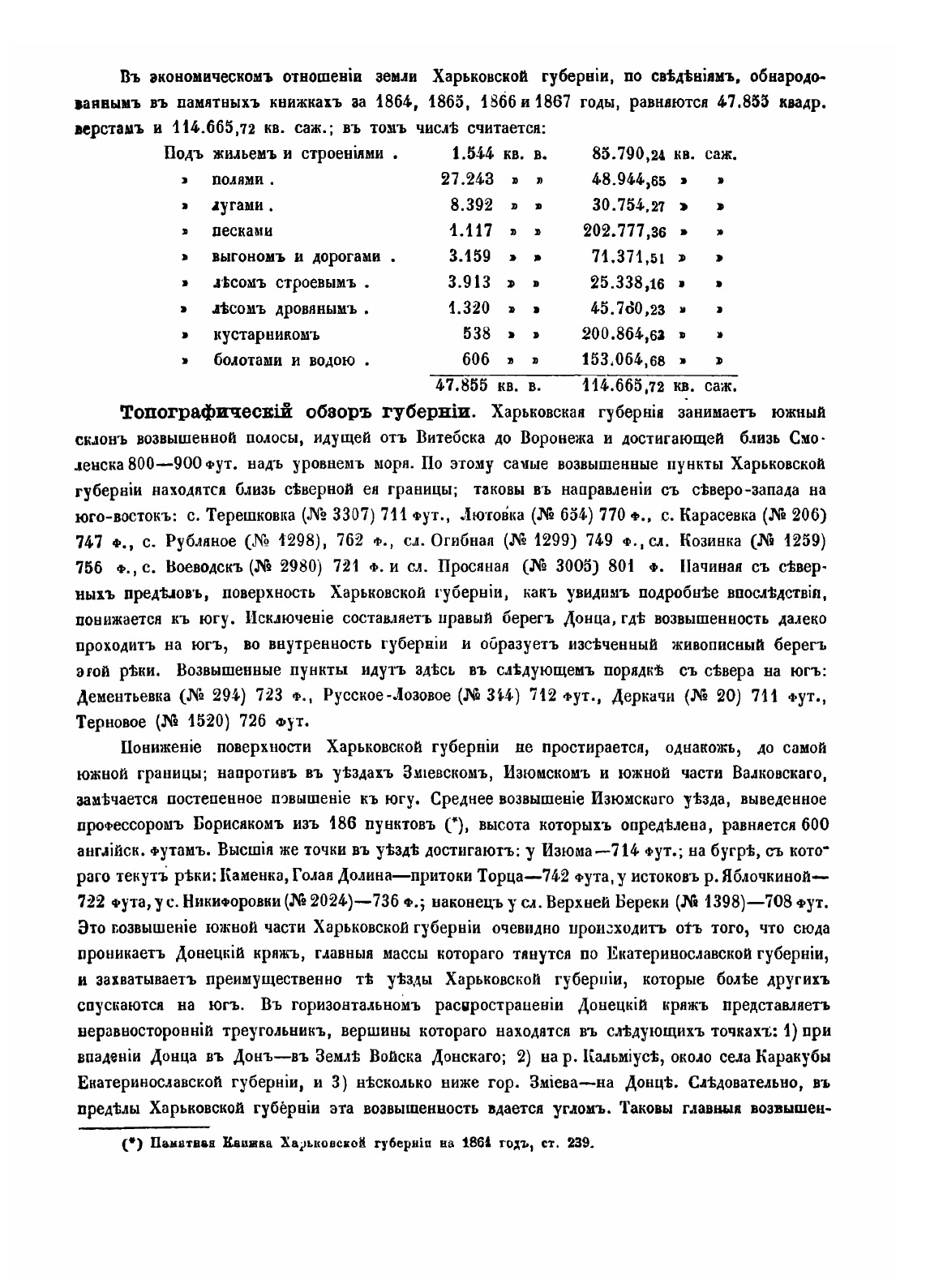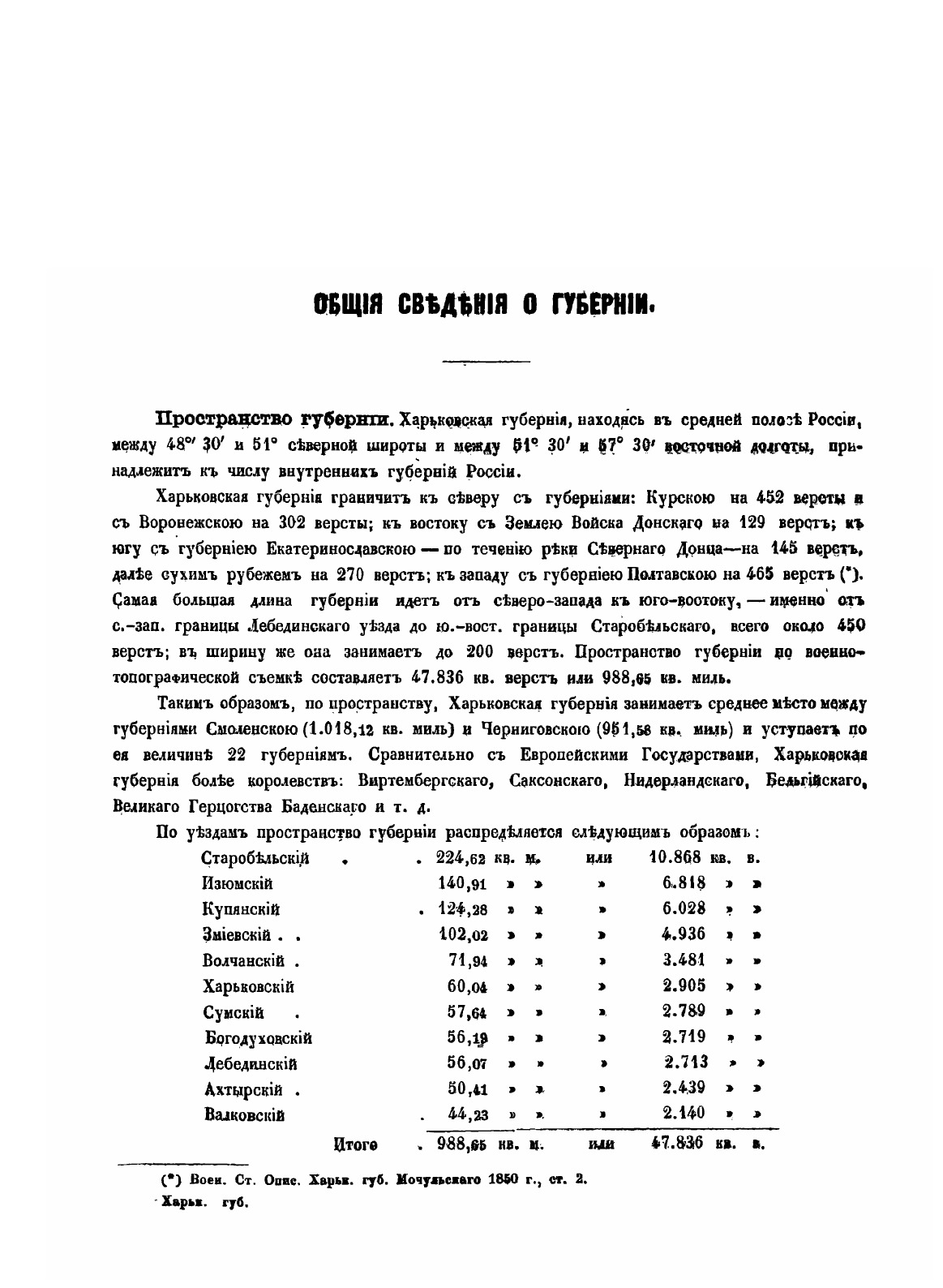 Общие сведения о Харьковской губернии. Топографический обзор губерний, геогностический очерк губерний,гидрографический обзор губерний. . . . . В эту книгу входят уезды:ХарьковскийАхтырскийБогодуховскийВалковскийВолчанскийЗмиевский?зюмскийКупянскийЛебединскийСтаробельскийСумскийРаспределение населенных мест по их различным наименованиямРаспределение населенных мест по числу считающихся в них дворовРаспределение населенных мест по числу считающихся в них жителей