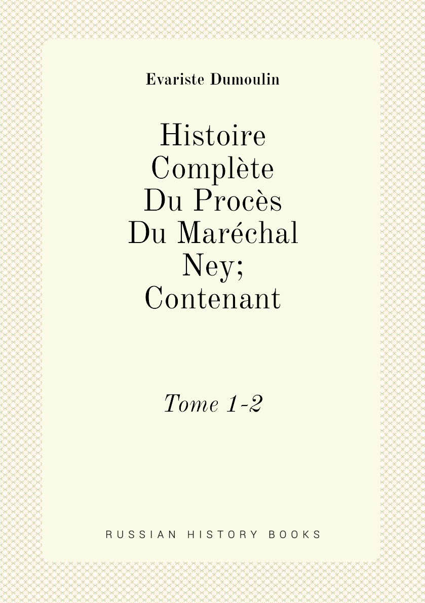 Печатная книга «Histoire Complète Du Procès Du Maréchal Ney; Contenant, Tome 1-2» в мягкой обложке, язык - французский. В книге 708 страниц, она напечатана на белой офсетной бумаге плотностью 80 г/м². Формат издания — 148x210 мм. Все книги аккуратно упаковываем в прочный трёхслойный непрозрачный картонный конверт.