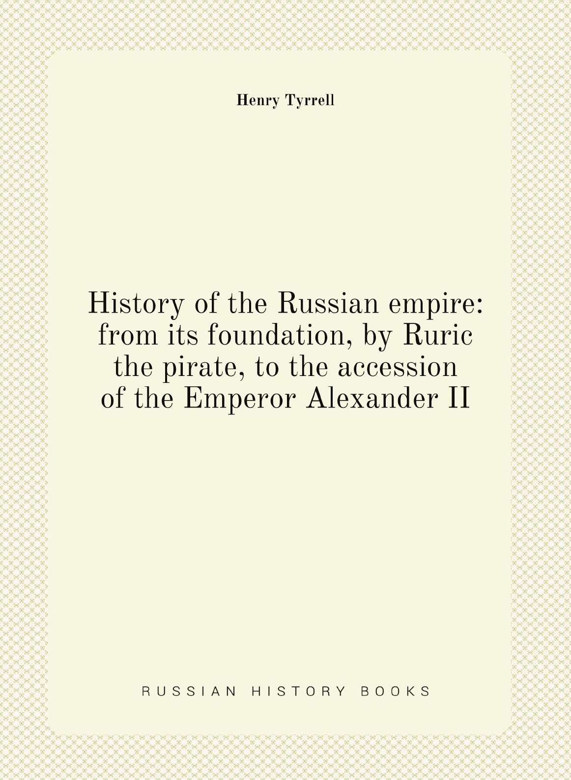 Печатная книга «History of the Russian empire: from its foundation, by Ruric the pirate, to the accession of the Emperor Alexander II» в мягкой обложке, язык - английский. В книге 648 страниц, она напечатана на белой офсетной бумаге плотностью 80 г/м². Формат издания — 205x280 мм. Все книги аккуратно упаковываем в прочный трёхслойный непрозрачный картонный конверт.