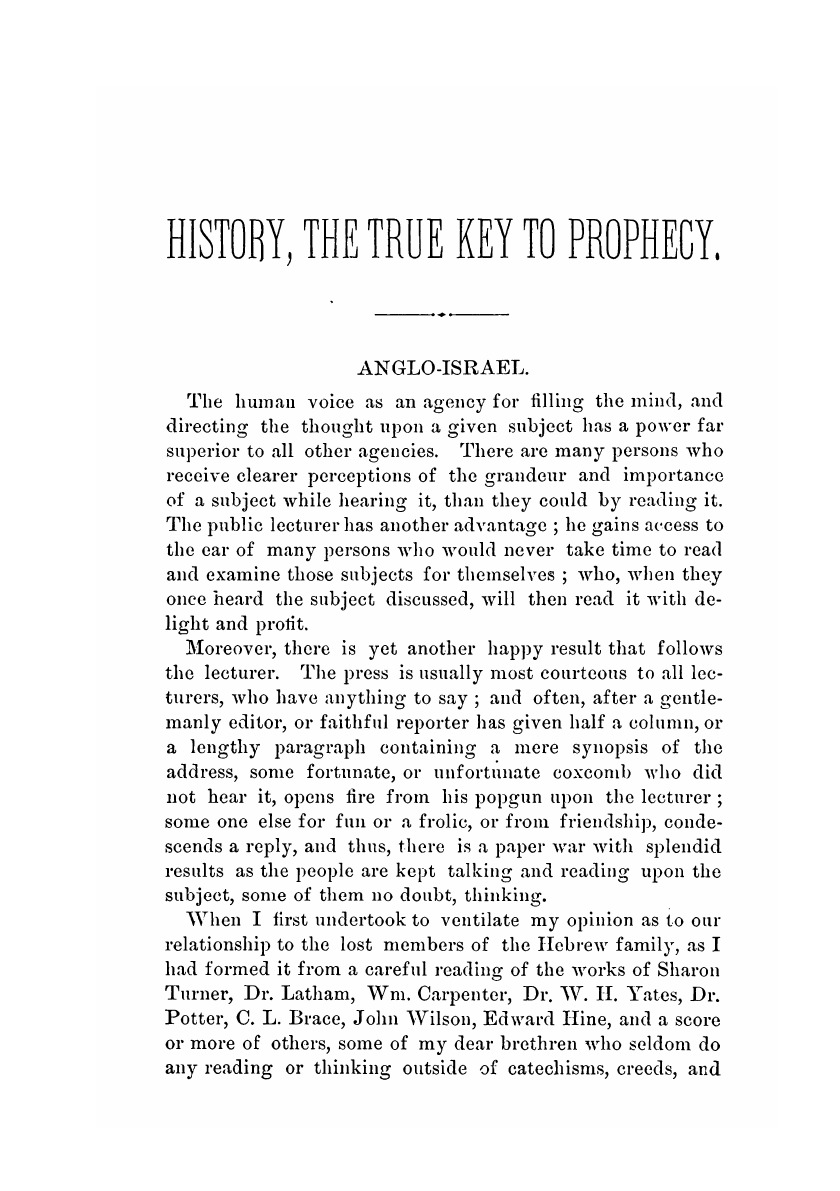 History, the true key to prophecy : in which the Saxon race is shown to be the lost tribes of Israel