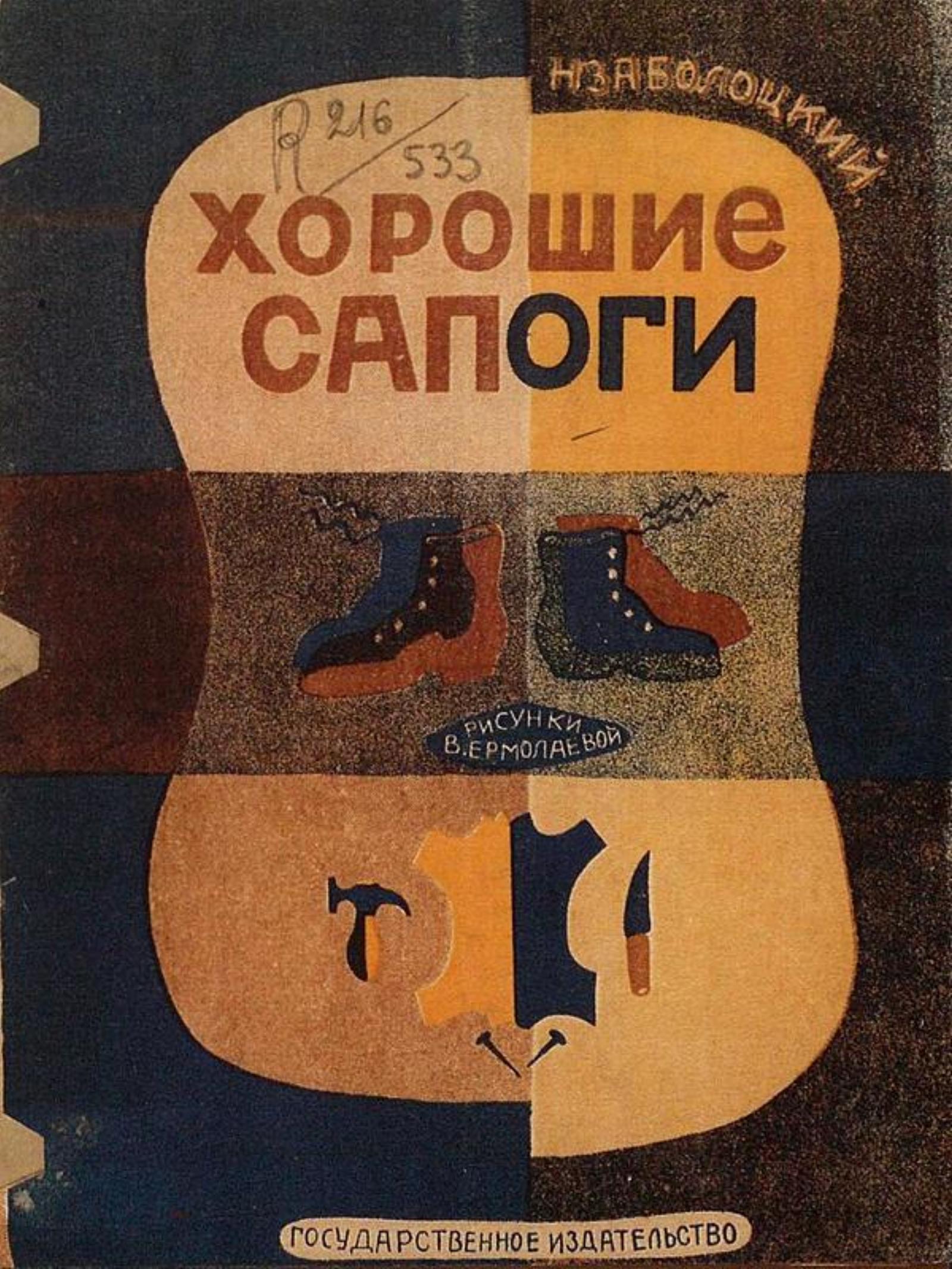 Заболоцкий, Николай Алексеевич. Хорошие сапоги : [Стихи для детей] / Н. Заболоцкий ; Рис В. Ермолаевой. — Москва : Гос. изд-во, [1928]. — [11] с. : цв. ил.; 21 см.