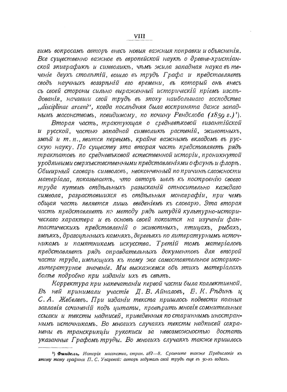 Уваров (граф Алексей Сергеевич, 1828 - 1884) – известный российский археолог. В обширном архивном наследии А. С. Уварова значительный пласт составляют материалы, относящиеся к исследованию христианской символики. Задуманный в конце пятидесятых годов прошлого столетия после длительного путешествия графа и графини Уваровых по Европе, этот труд остался незавершенным. В 1908 г. Д. В. Айналов, Е. К. Редин и С. А. Жебелев по просьбе графини П. С. Уваровой издали первый том этой фундаментальной работы: «Символику древнехристианского периода». В предисловии редакторов описаны все, разобранные после смерти автора предназначенные к печати материалы.