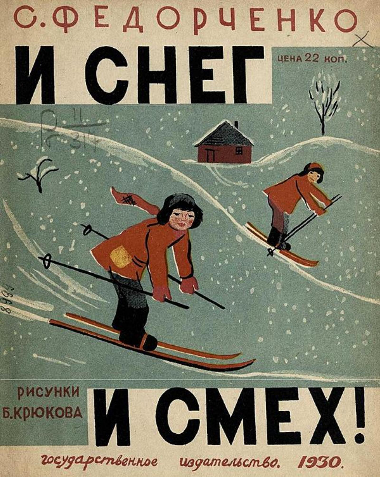 Федорченко, С. И снег и смех! / С. Федорченко ; рисунки Б. Крюкова. — Москва : Гос. изд-во, 1930. — 11 с. : цв. ил.; 20 см.