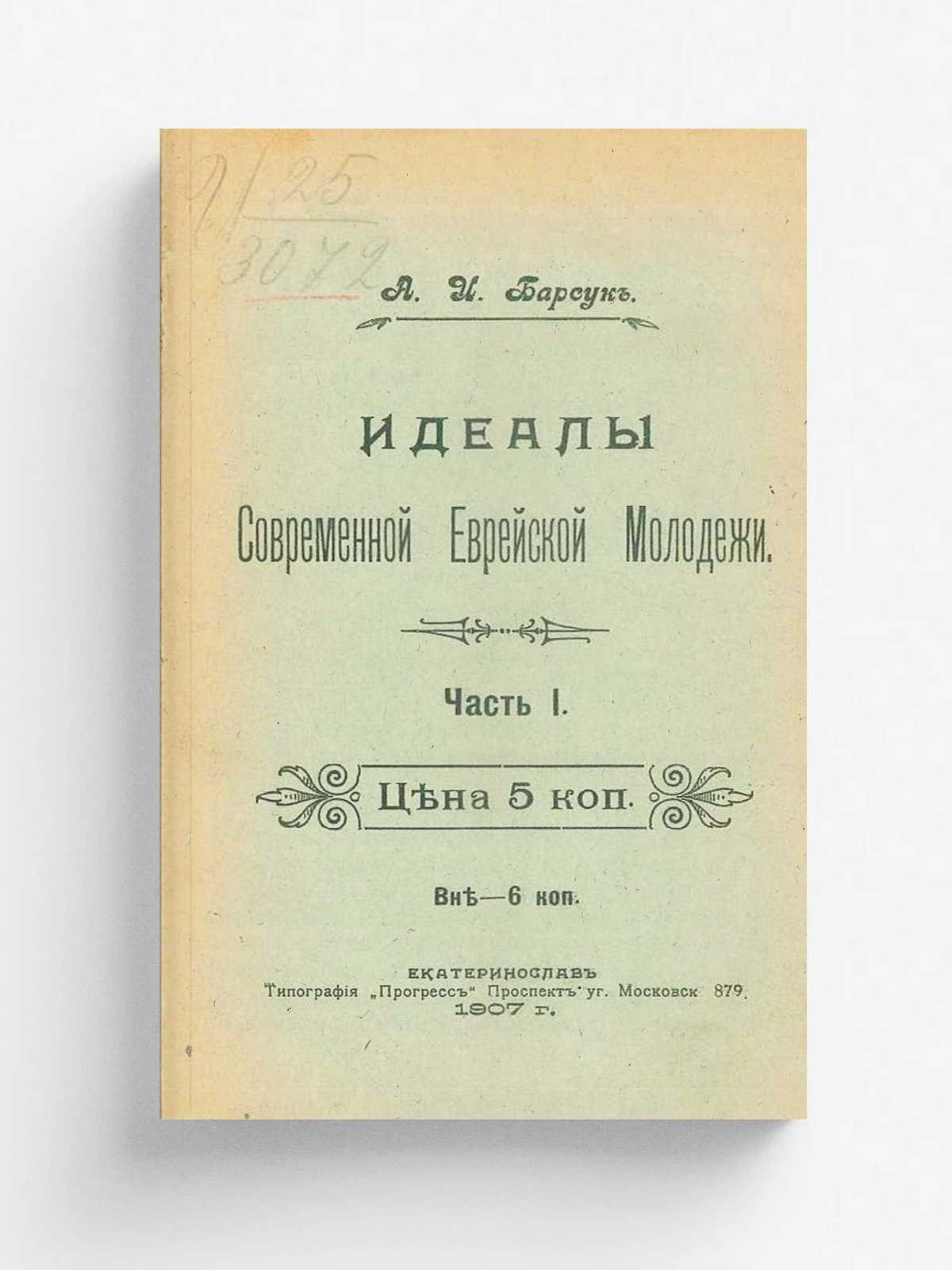 Барсук, А. И. Идеалы современной еврейской молодежи: Ч. 1- / А. И. Барсук. — Екатеринослав: тип. «Прогресс», 1907. — 18. Ч. 1. — 1907. — 16 с.