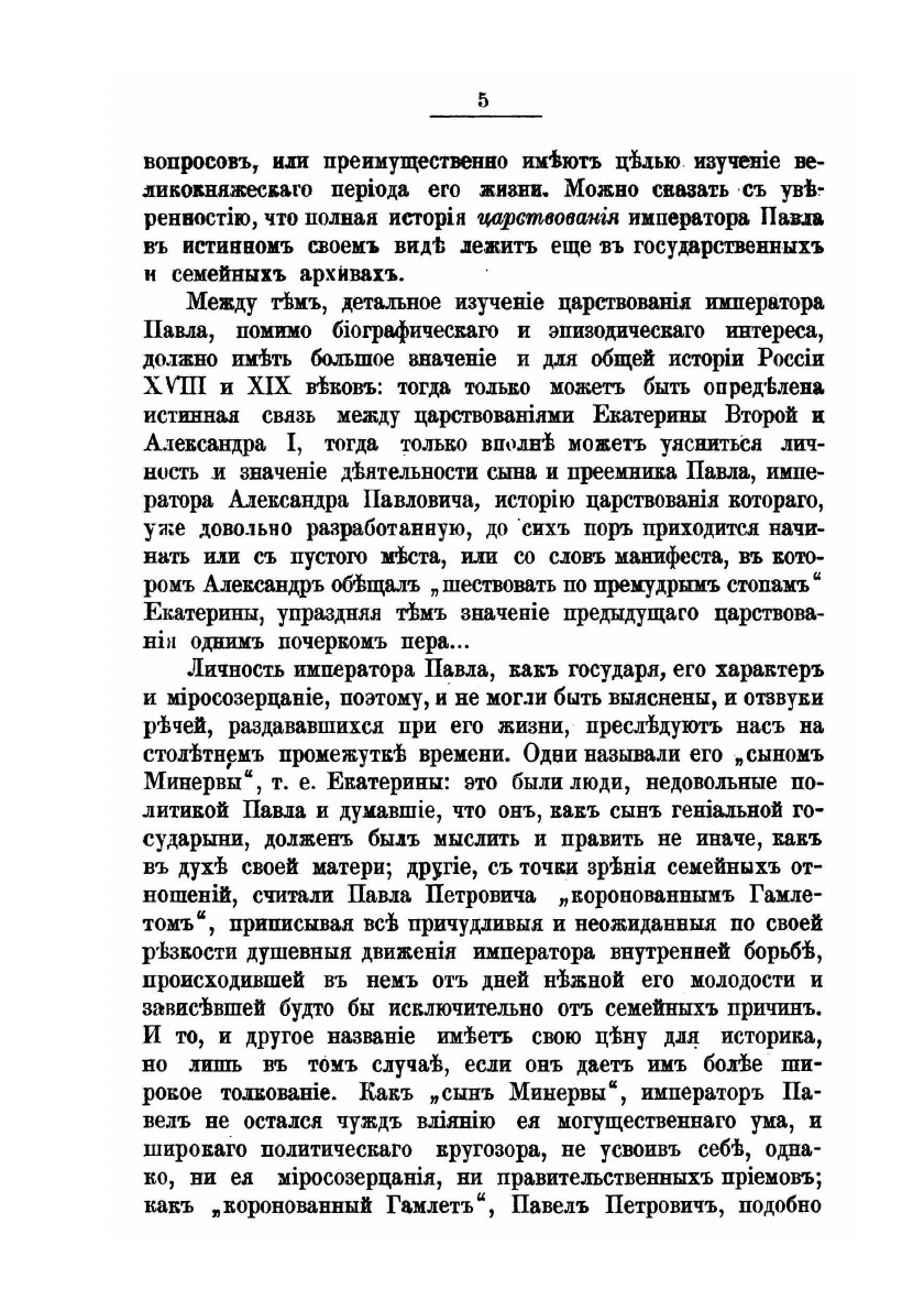 В этом сравнительно небольшом труде автор, по собственному признанию, делает попытку воссоздания истинного исторического образа России времен правления Павла, которое в современной Шумигорскому историографии рассматривалось «по преимуществу с анекдотической точки зрения».