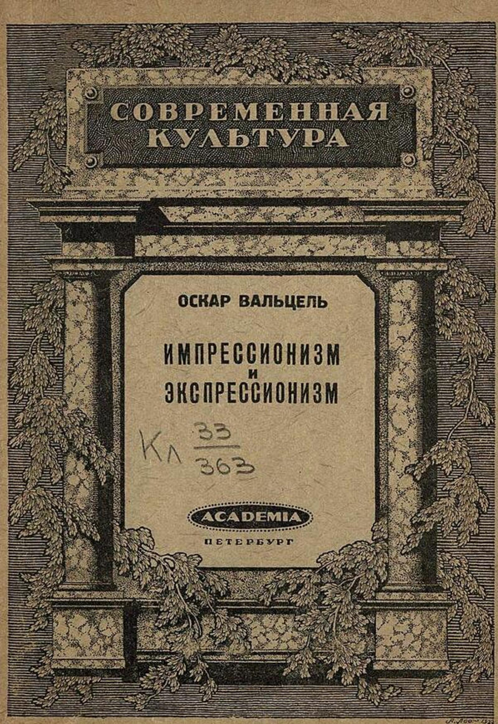 Вальцель, Оскар (1864–1944). Импрессионизм и экспрессионизм в современной Германии (1890–1920) / Оскар Вальцель, проф. Бонск. ун-та; Авториз. пер. с нем. изд. 1920 г. О. М. Котельниковой, под ред. проф. В. М. Жирмунского. — Петербург: Асаdеmiа, 1922. — 94, [1] с.; 18 см. — (Современная культура).
